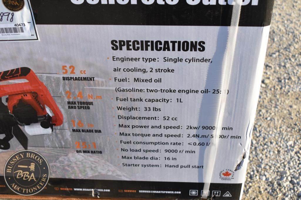 ATS-CC16 Concrete Cutter, 52 cc displacement, 2.4 Nm max torque, mixed oil fuel type, 1 L fuel tank capacity, 33 lbs weight, oil mix ratio...
