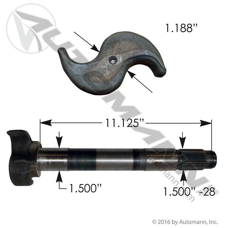 LH CAMSHAFT 11-1/8" LENGTH, 1-1/8" HEAD, 1-1/2"-28 SPLINE, 1-1/2" JOURNAL - MERITOR 16-1/2" Q-PLUS