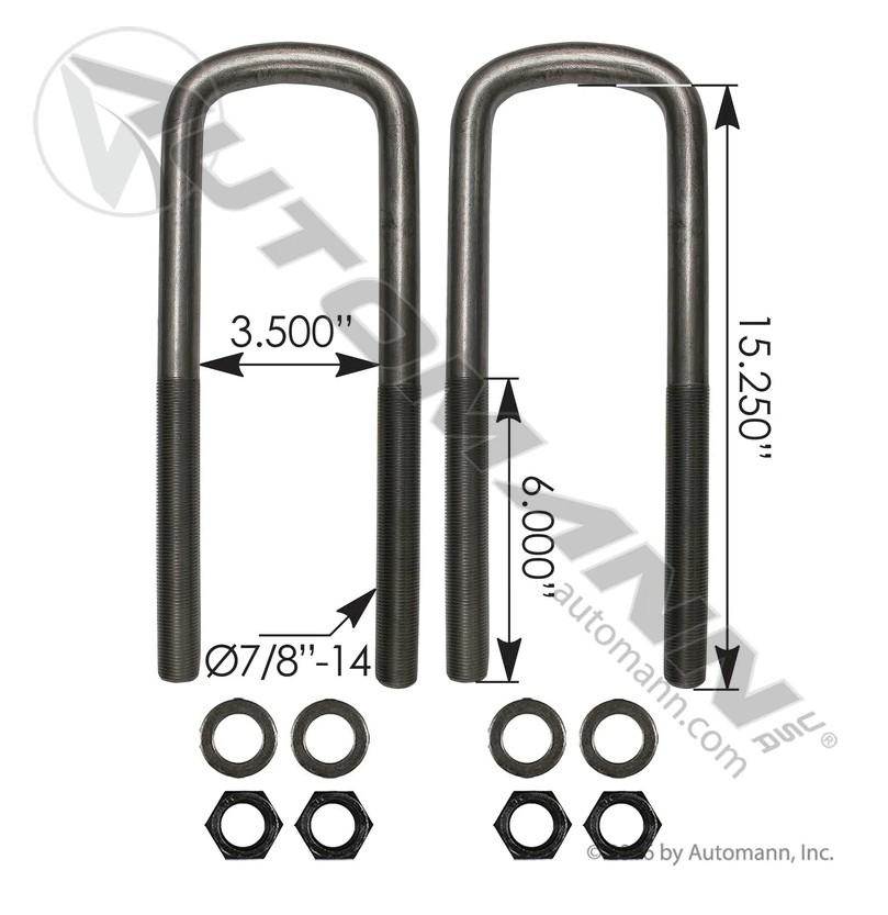 U-BOLT KIT 7/8" BOLT DIAMATER X 3-1/2 WIDE X 15 LONG