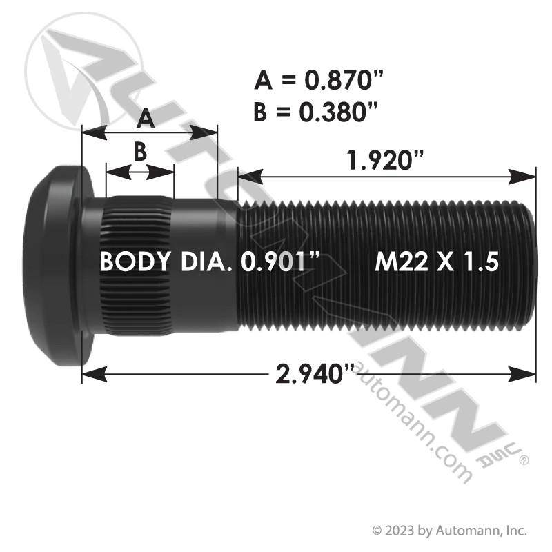 WHEEL STUD - METRIC SERRATED M22X1.5