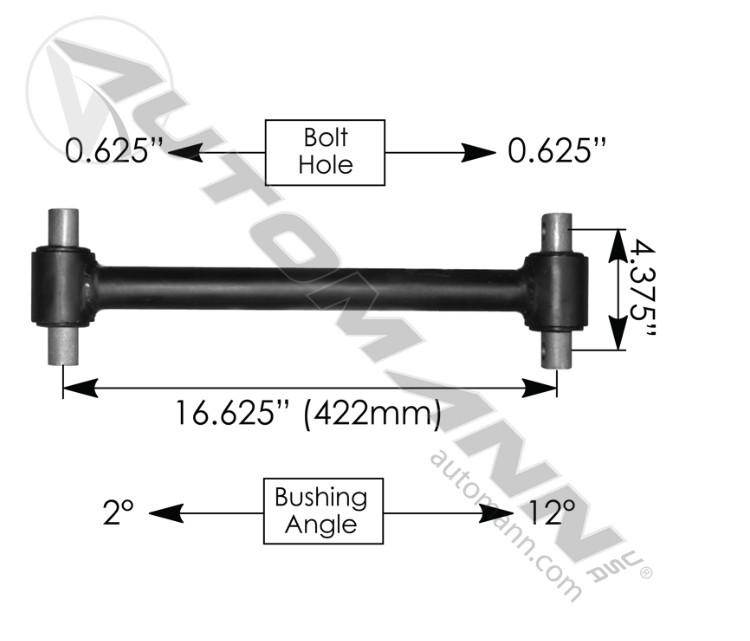 FREIGHTLINER FIXED TORQUE ROD 16.625 TUBE WITH RUBBER BUSHINGS