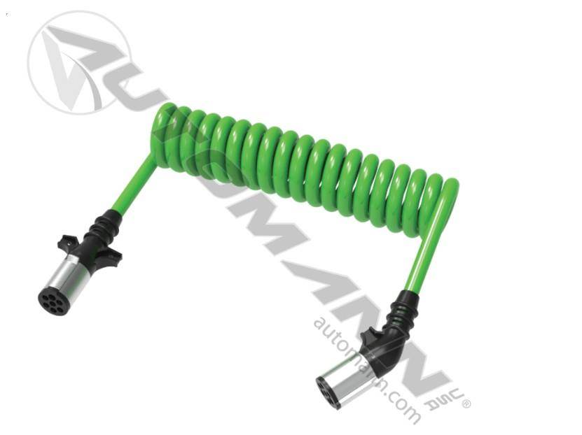 GREEN ABS ELECTRIC CABLE 15FT LENGTH - 12" LEAD LENGTH - STRAIGHT TRACTOR PLUG - ANGLED TRAILER PLUG - 7-WAY NYLON SEALED PISTOL/STRAIGHT