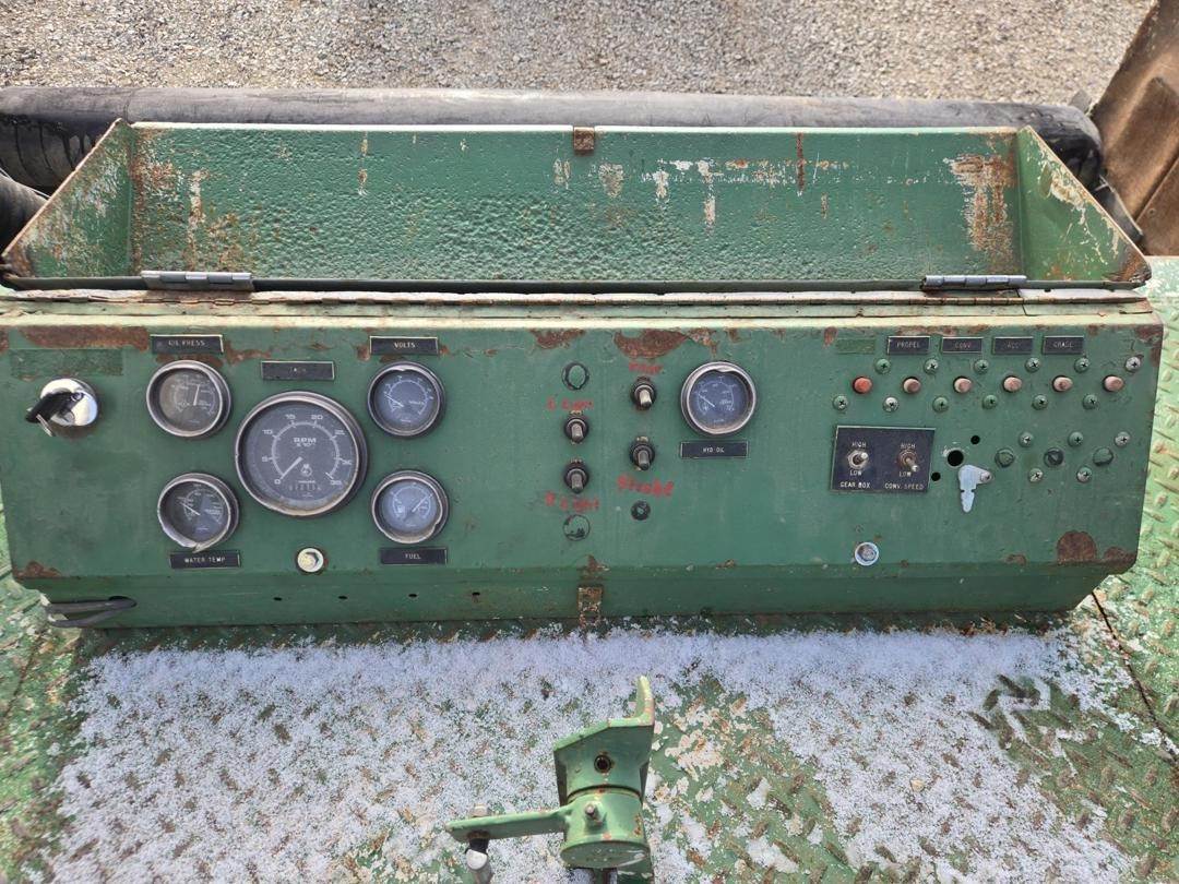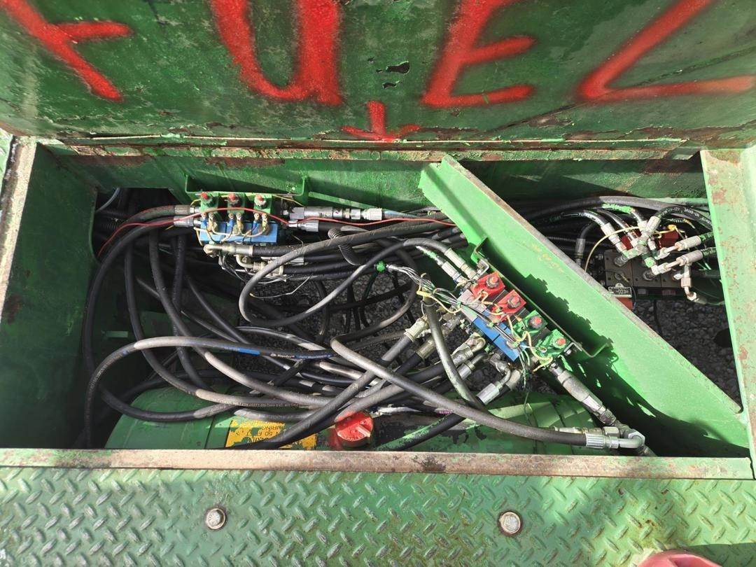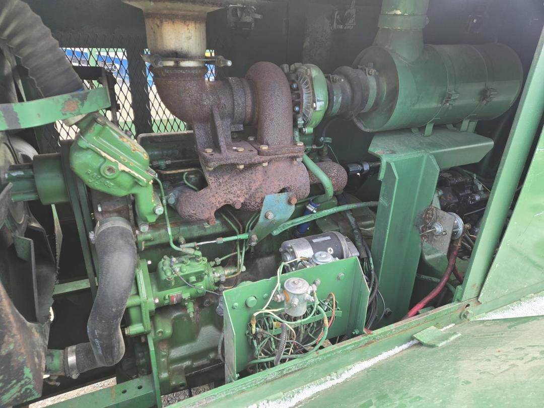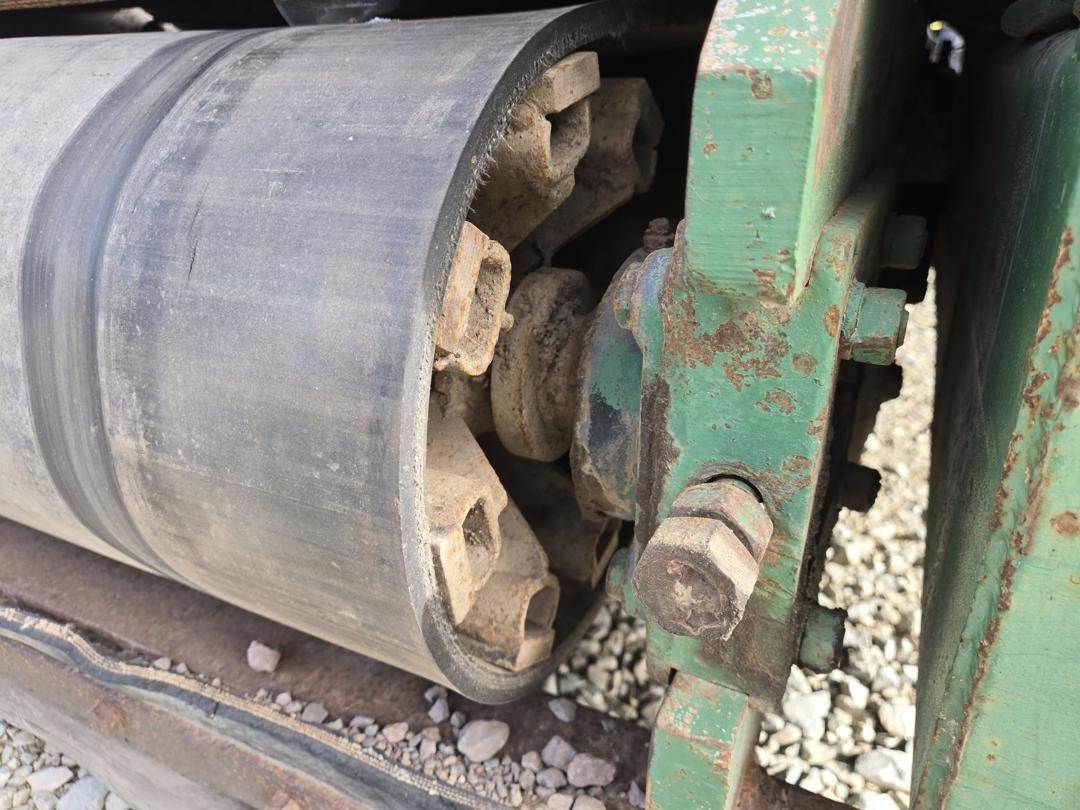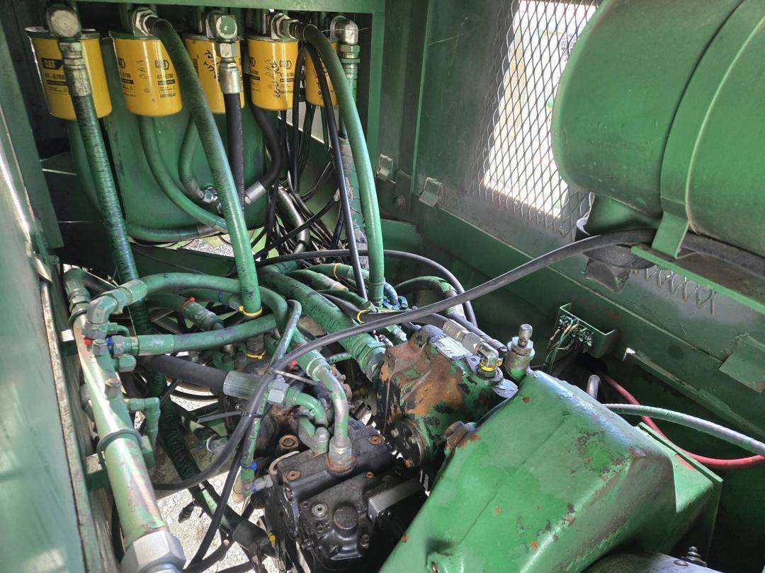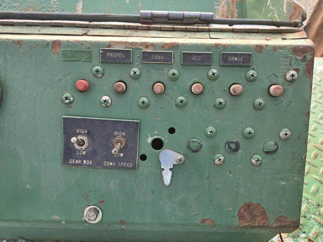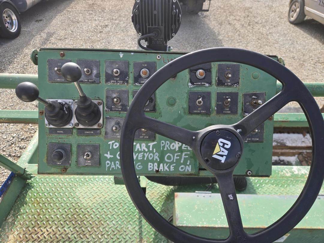 Caterpillar 3056 Turbo Diesel Engine, Hydrostatic Drive W/ High and Low, Approx 30" Side Discharge Conveyor Width, Approx 10' Conveyor Length, 4 Wheel Steer, Hydraulic Side Blades, Front and Rear Work Lights, 385/65R22.5 Tires