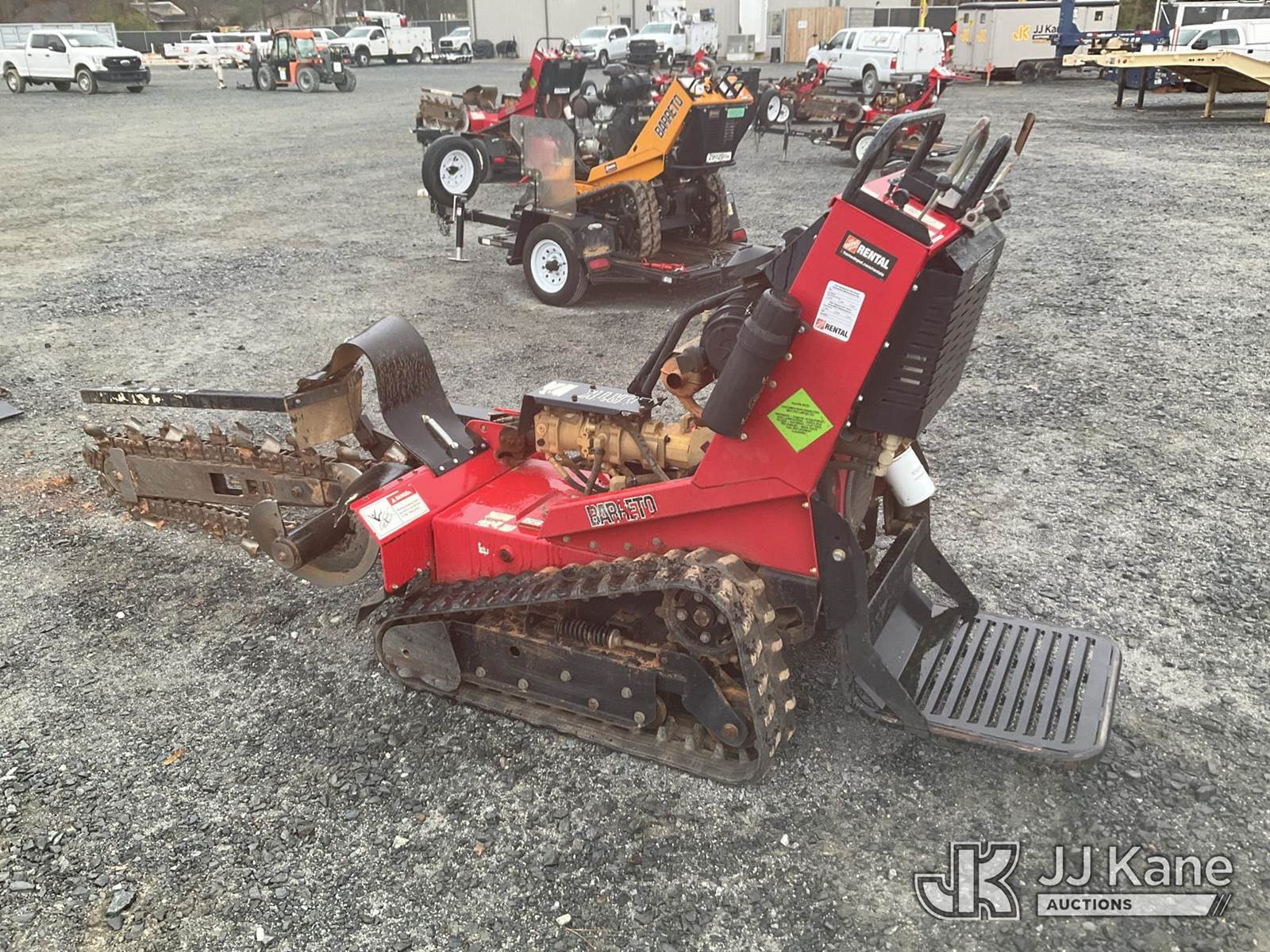 Barreto 20RTK Walk-Behind Crawler Trencher, s/n RTK1231, Honda Hydrostatic, gas, with 36 in trencher boom, carbide & c-cup chain, rubber tracks, support trailer, Selling With Item 1571152(Equipment & Trailer Price Will Be Split Out On Invoice To Reflect 80/20, Equipment To Trailer Price Ratio For Tax Purposes.) (Runs, Moves & Operates ) (Reads 754 hours) NOTE: This unit is being sold AS IS/WHERE IS via Timed Auction and is located in China Grove, NC. Inspection & preview days for this unit are the 2 business days prior to the first day of items closing for this auction, item is located at 820 E NC Hwy 152 China Grove, NC 28023 and hours of operations are 8a-4p. For pre-sale questions, please contact Office Staff @ (704) 674-1113. (Buyer is responsible for removal. Assistance by consignor or JJ Kane Auctioneers is not assured.)