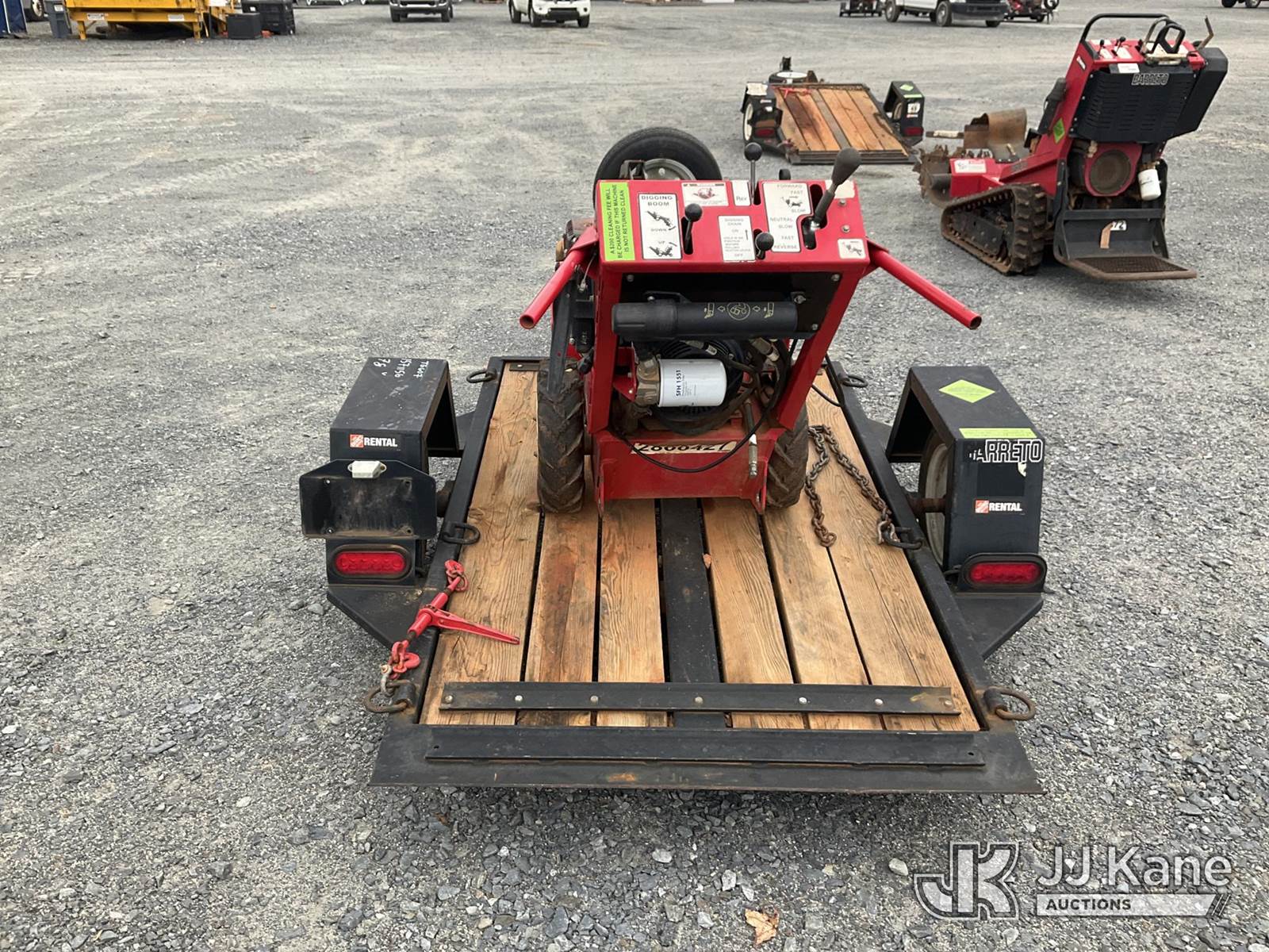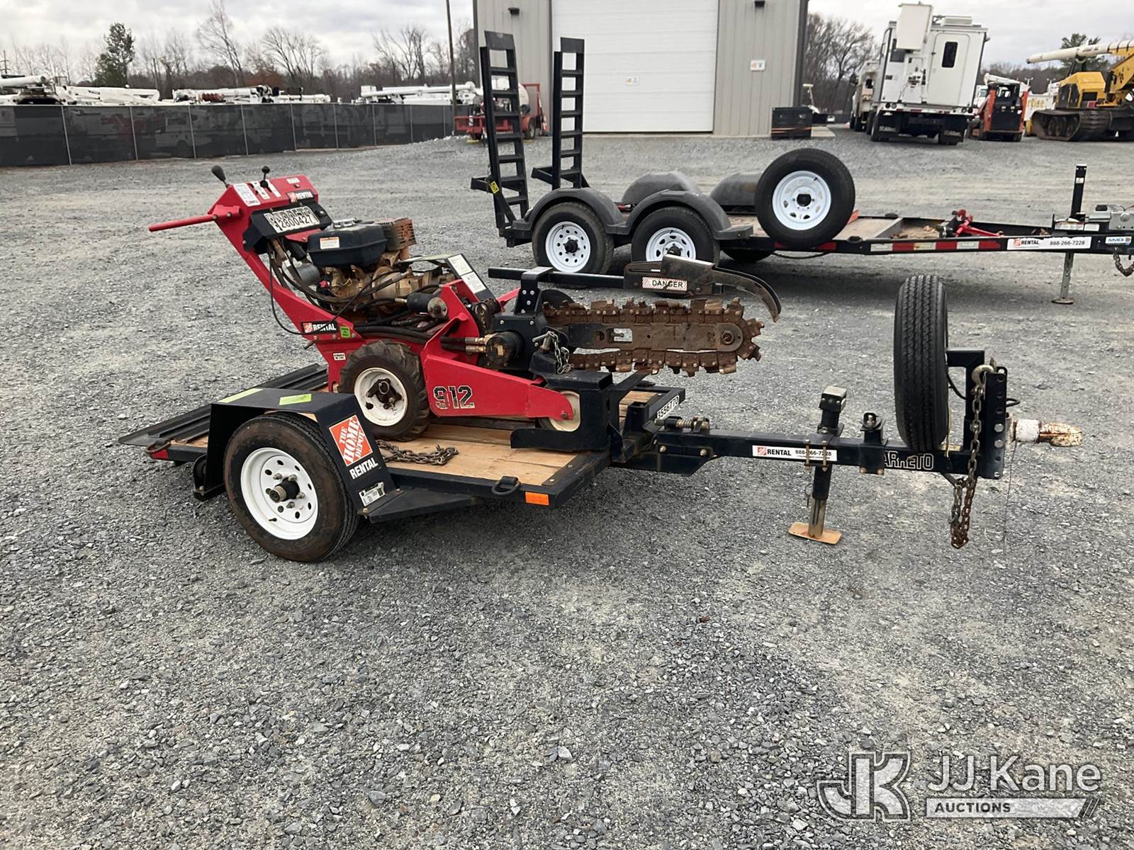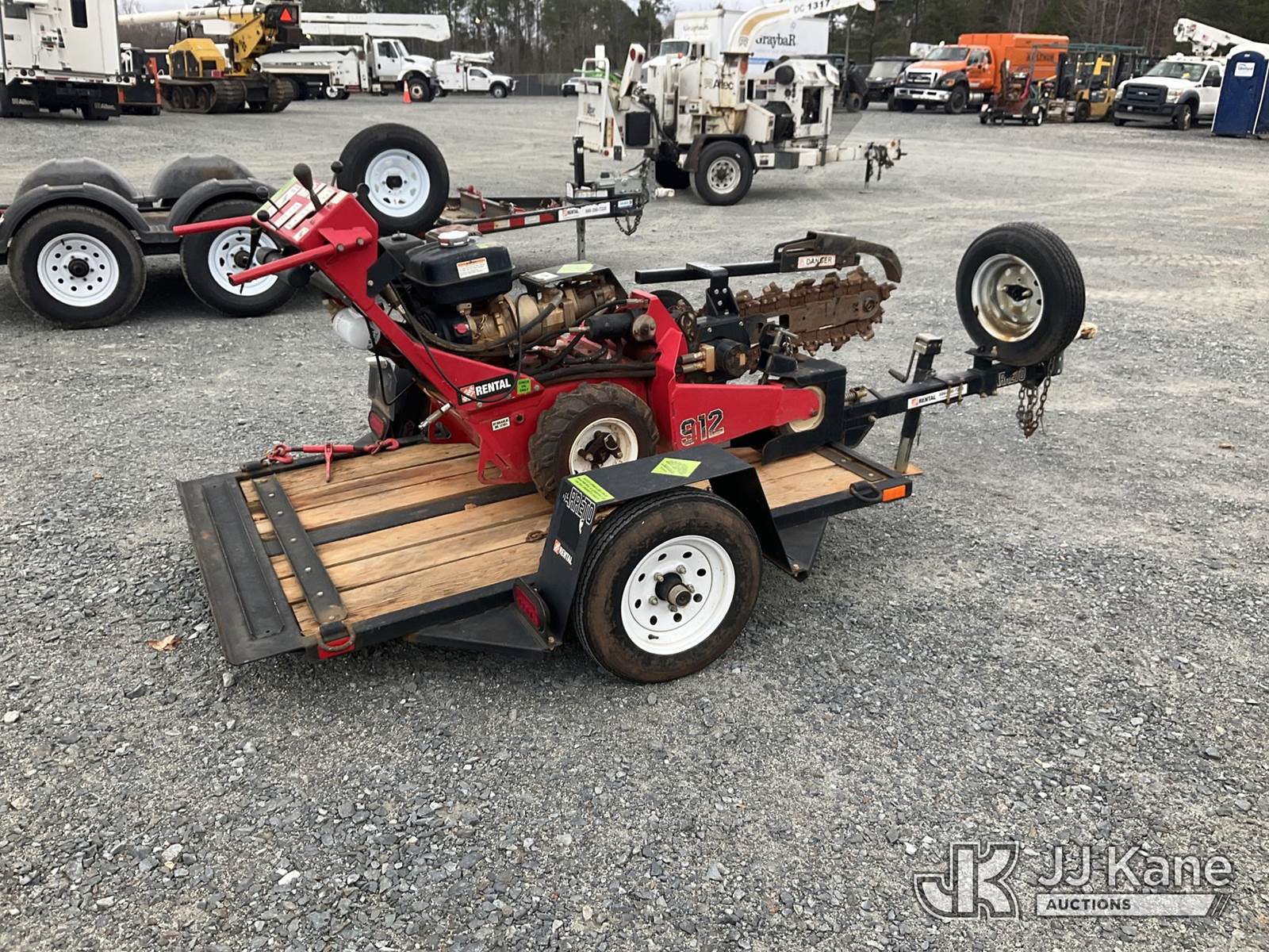 Barreto 912 Walk-Behind Rubber Tired Trencher, s/n M3444, Honda Hydrostatic, gas, with 24 in trencher boom, carbide & c-cup chain, support trailer, Selling With Item 1571156(Equipment & Trailer Price Will Be Split Out On Invoice To Reflect 80/20, Equipment To Trailer Price Ratio For Tax Purposes.) (Not Running, Condition Unknown) (Reads 779 hours) NOTE: This unit is being sold AS IS/WHERE IS via Timed Auction and is located in China Grove, NC. Inspection & preview days for this unit are the 2 business days prior to the first day of items closing for this auction, item is located at 820 E NC Hwy 152 China Grove, NC 28023 and hours of operations are 8a-4p. For pre-sale questions, please contact Office Staff @ (704) 674-1113. (Buyer is responsible for removal. Assistance by consignor or JJ Kane Auctioneers is not assured.)