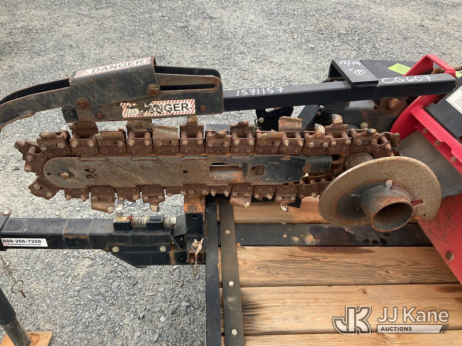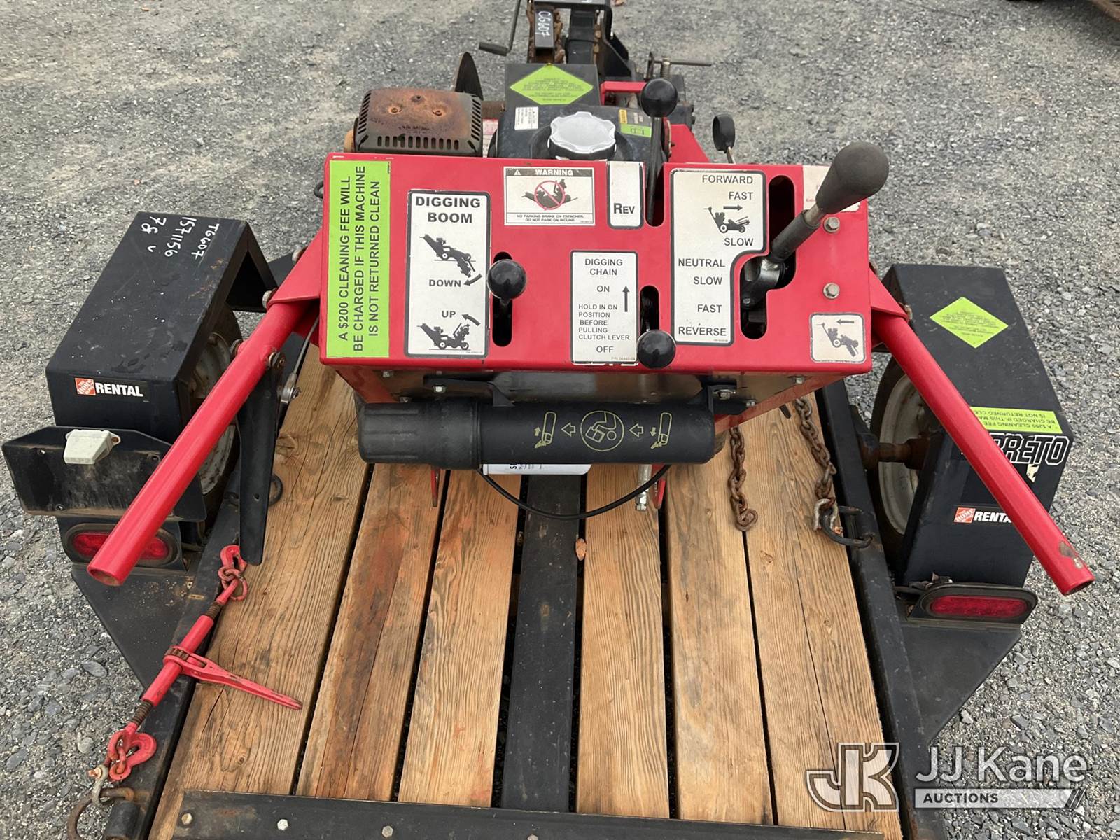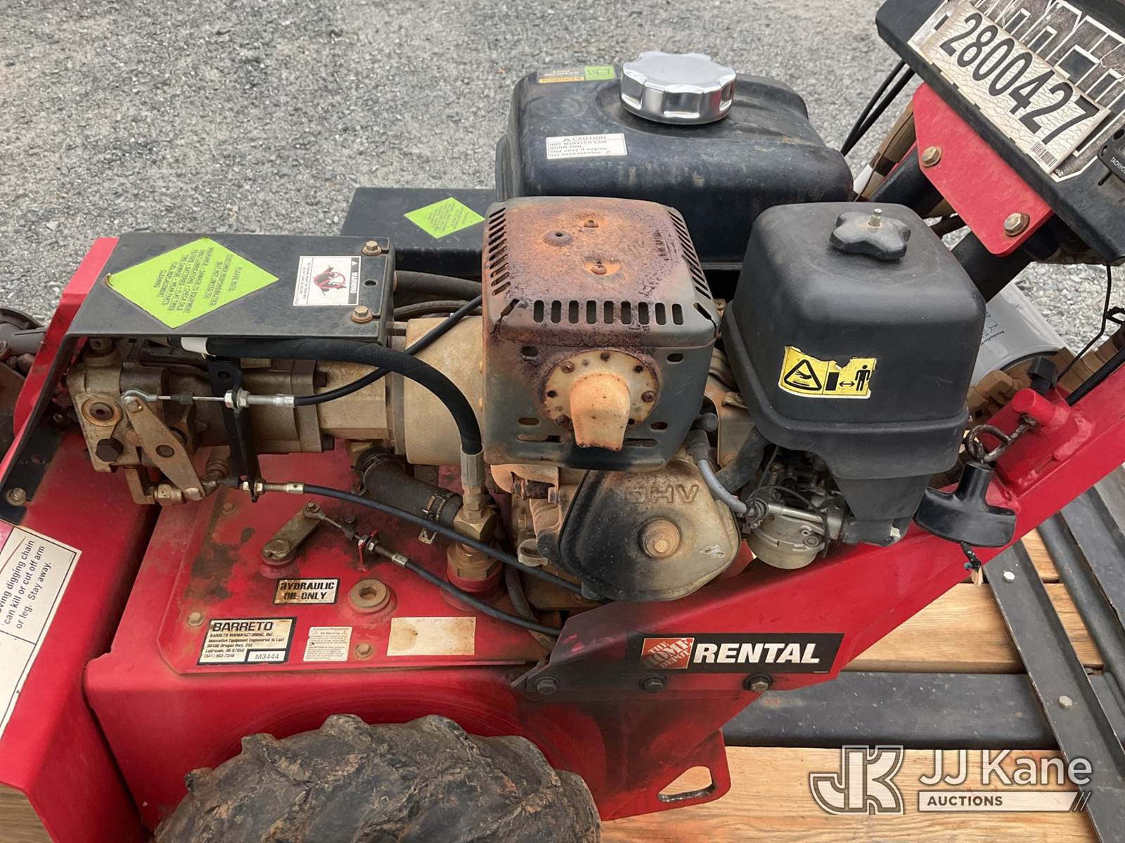 Barreto 912 Walk-Behind Rubber Tired Trencher, s/n M3444, Honda Hydrostatic, gas, with 24 in trencher boom, carbide & c-cup chain, support trailer, Selling With Item 1571156(Equipment & Trailer Price Will Be Split Out On Invoice To Reflect 80/20, Equipment To Trailer Price Ratio For Tax Purposes.) (Not Running, Condition Unknown) (Reads 779 hours) NOTE: This unit is being sold AS IS/WHERE IS via Timed Auction and is located in China Grove, NC. Inspection & preview days for this unit are the 2 business days prior to the first day of items closing for this auction, item is located at 820 E NC Hwy 152 China Grove, NC 28023 and hours of operations are 8a-4p. For pre-sale questions, please contact Office Staff @ (704) 674-1113. (Buyer is responsible for removal. Assistance by consignor or JJ Kane Auctioneers is not assured.)