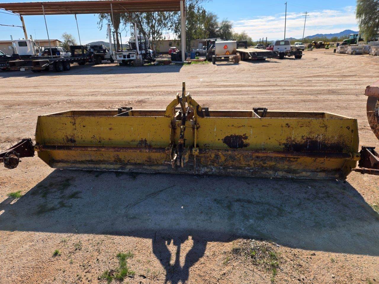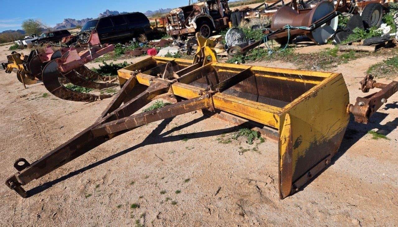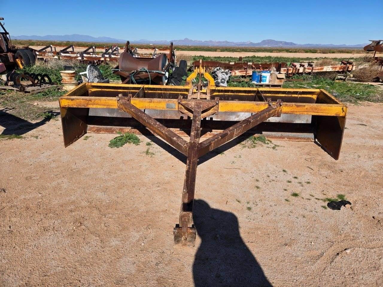 12' DRAG SCRAPER (UKNOWN OF THE MODEL OR MAKE), HAS BEEN PAINTED AND ADDED CUTTING EDGE, STOCK# 11458,