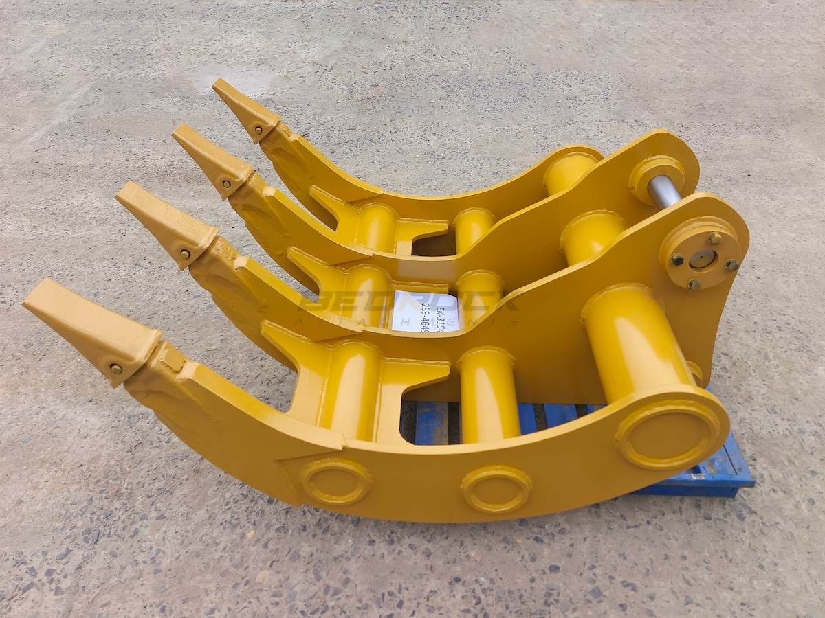 Excavator Rakes have a curved profile for efficient digging and screening of debris such as rocks and tree roots, making it possible to remove roots during site preparation. And it can cooperate with Thumbs to expand its processing functions. The rake with pointed tips, which can provide maximum penetration and stays sharp for extended wear life.
