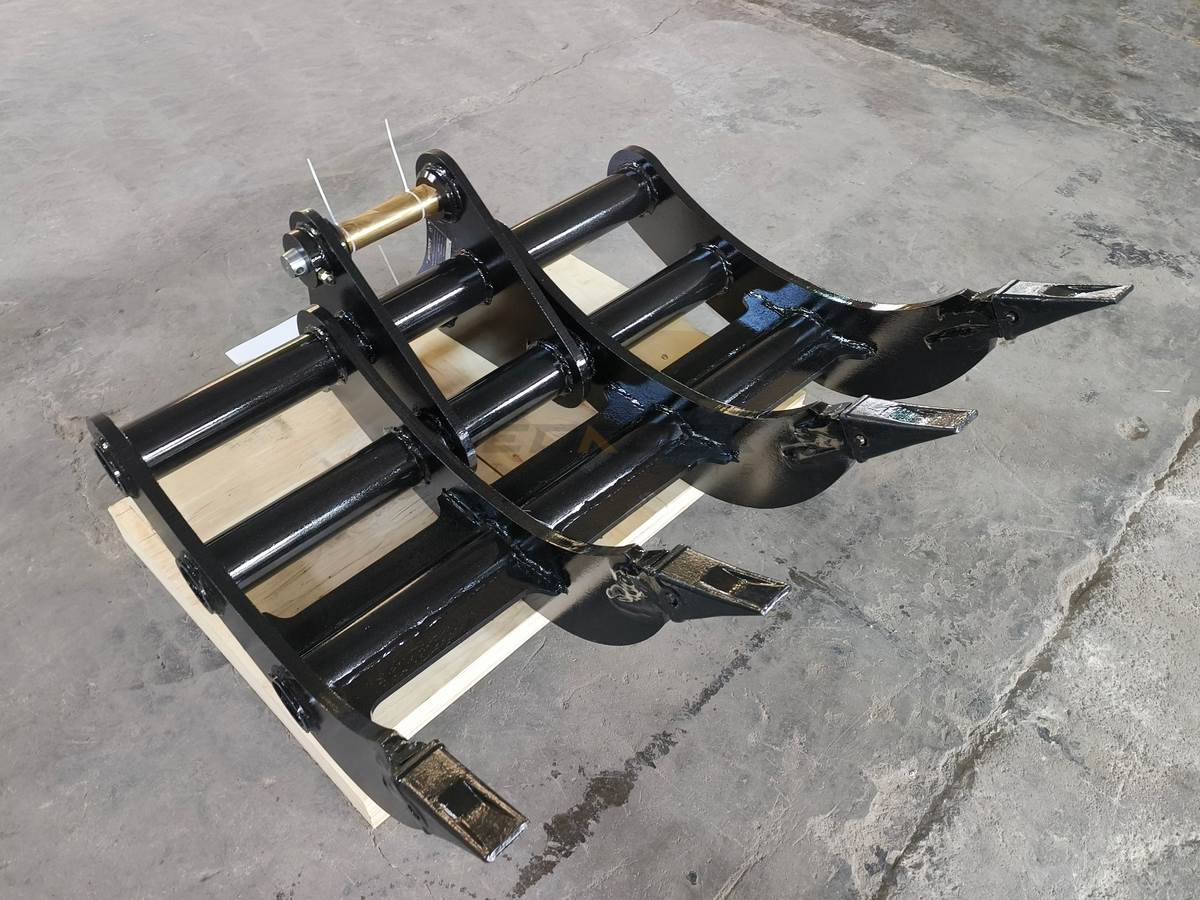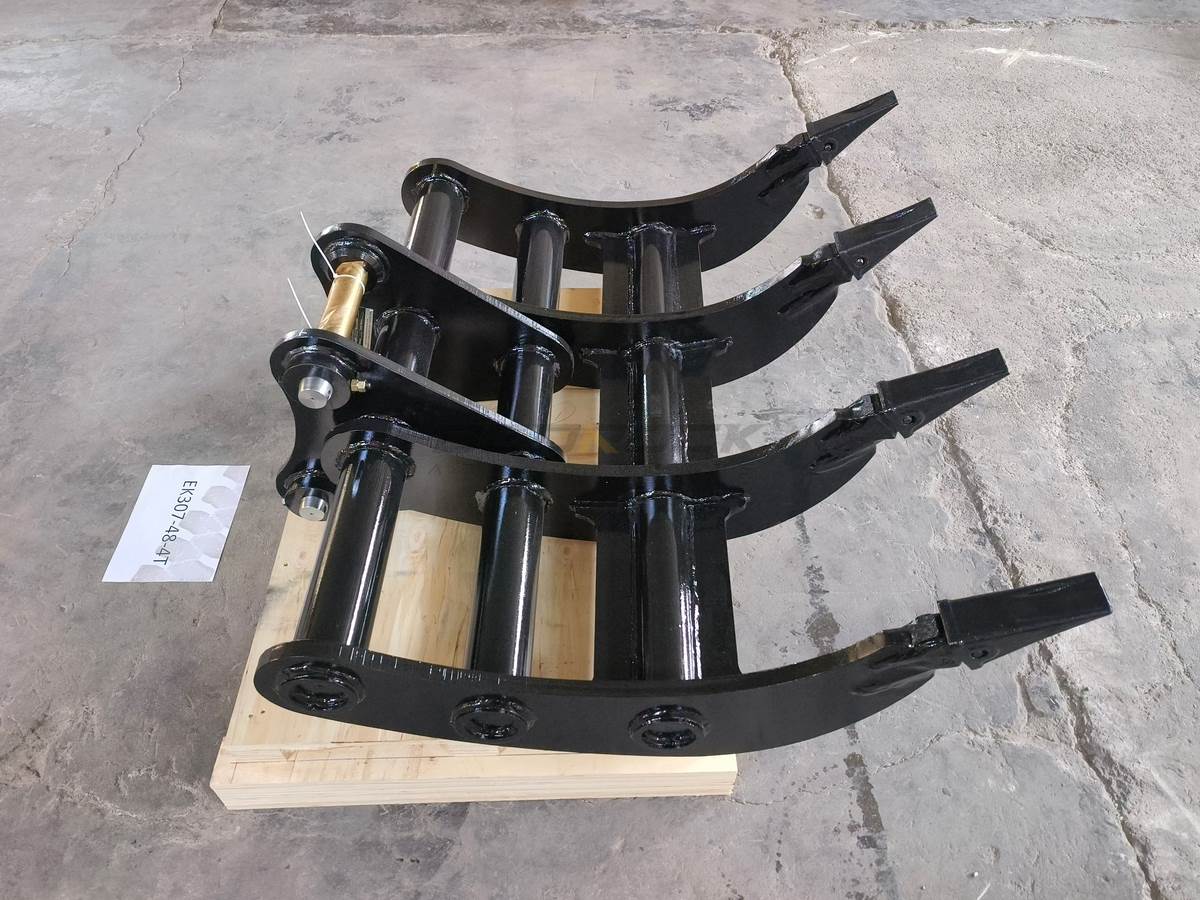 Excavator Rakes have a curved profile for efficient digging and screening of debris such as rocks and tree roots, making it possible to remove roots during site preparation. And it can cooperate with Thumbs to expand its processing functions. The rake with pointed tips, which can provide maximum penetration and stays sharp for extended wear life.