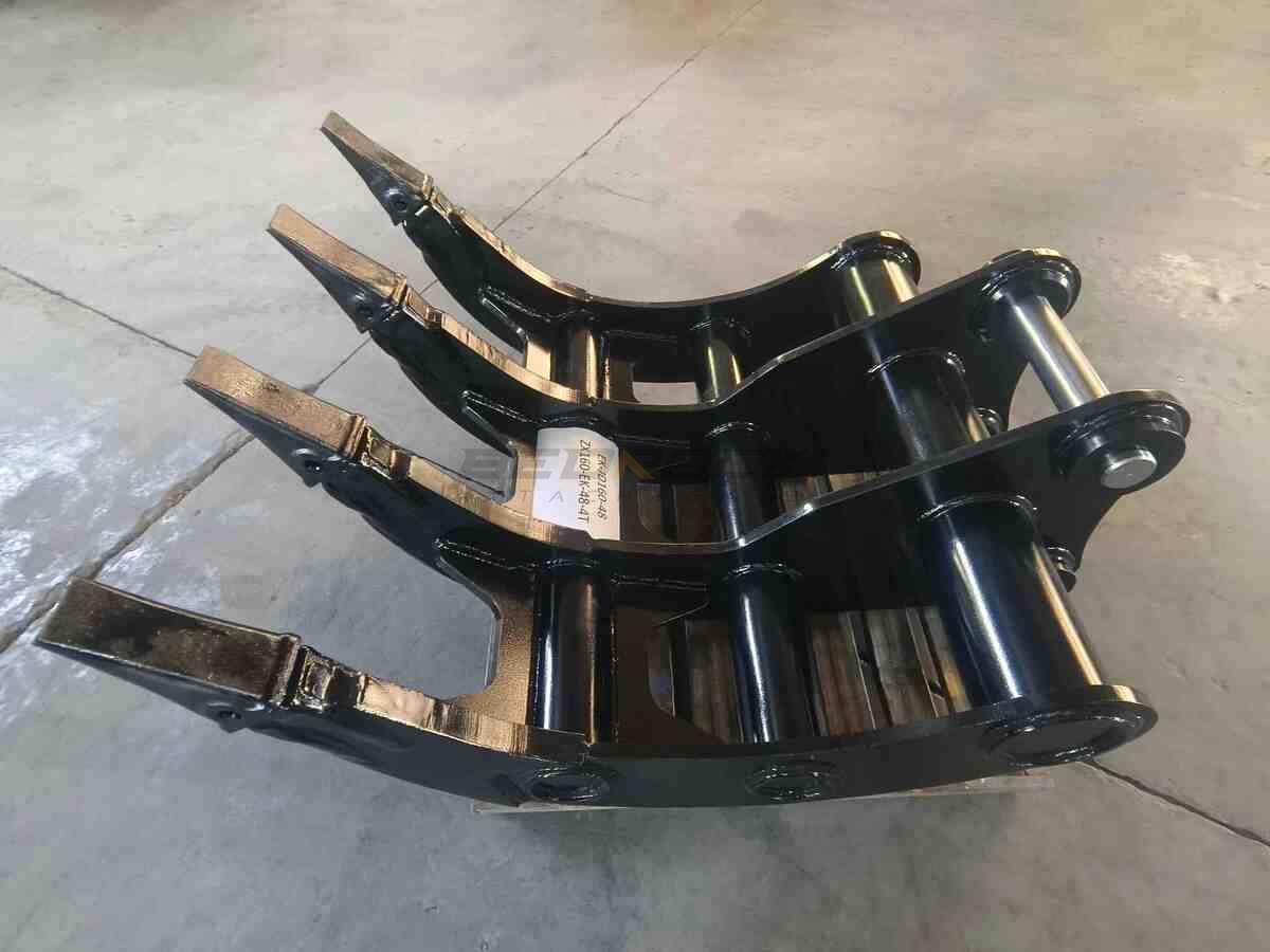 Excavator Rakes have a curved profile for efficient digging and screening of debris such as rocks and tree roots, making it possible to remove roots during site preparation. And it can cooperate with Thumbs to expand its processing functions. The rake with pointed tips, which can provide maximum penetration and stays sharp for extended wear life.