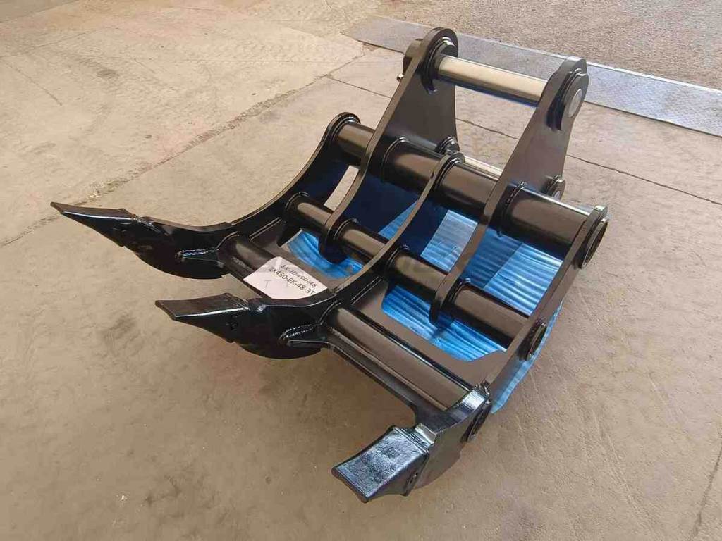 Excavator Rakes have a curved profile for efficient digging and screening of debris such as rocks and tree roots, making it possible to remove roots during site preparation. And it can cooperate with Thumbs to expand its processing functions. The rake with pointed tips, which can provide maximum penetration and stays sharp for extended wear life.