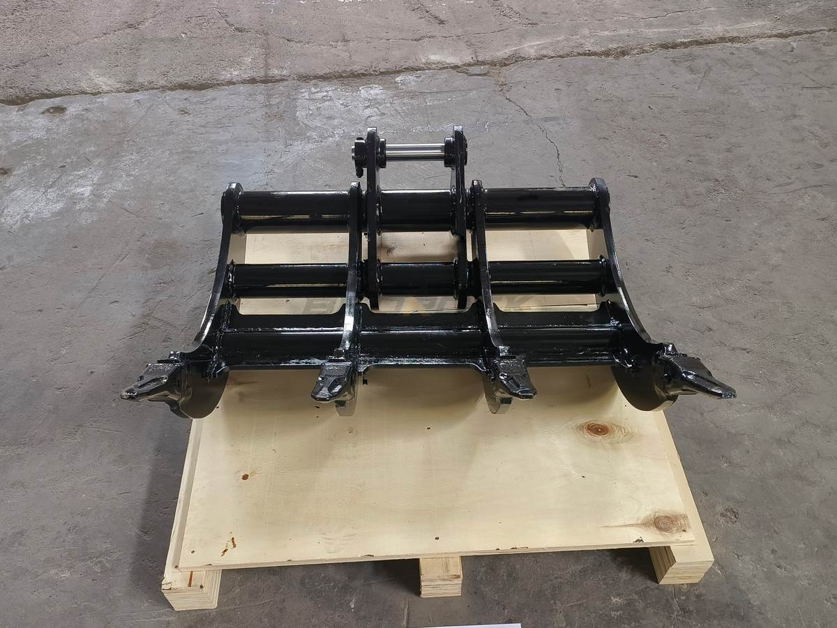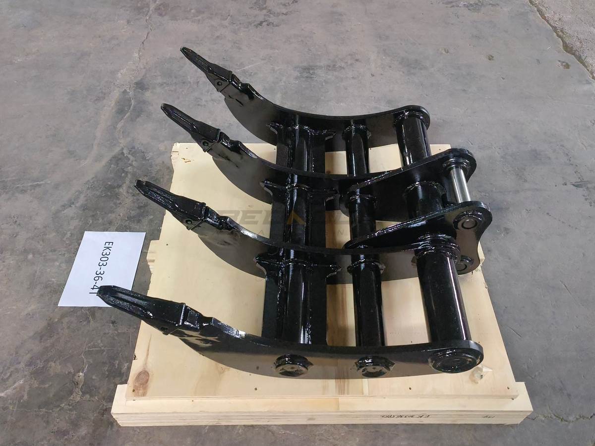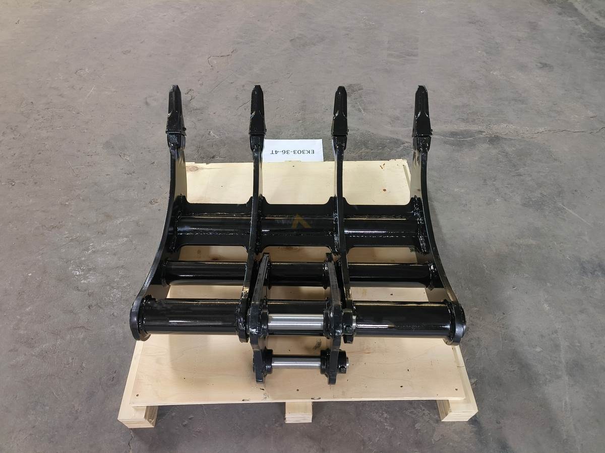 Excavator Rakes have a curved profile for efficient digging and screening of debris such as rocks and tree roots, making it possible to remove roots during site preparation. And it can cooperate with Thumbs to expand its processing functions. The rake with pointed tips, which can provide maximum penetration and stays sharp for extended wear life.