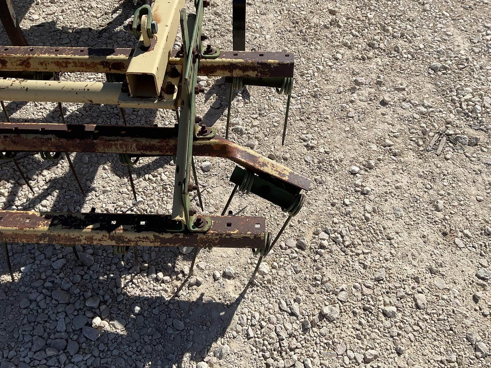 Bigham brothers 15’ chisel plow. Shanks and sweeps are in good shape. Has the coil tine harrows on the back and gauge wheels up front. One side of the harrows is bent, see pictures. Nice chisel plow!