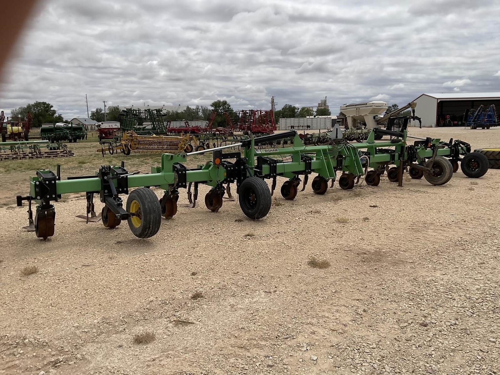 Bigham Brothers 12 row 40’’ 888 row crop cultivator. Set up for fertilizer and had the fertilizer shanks instead of barring off disc. Does not have shields. Super nice cultivator!