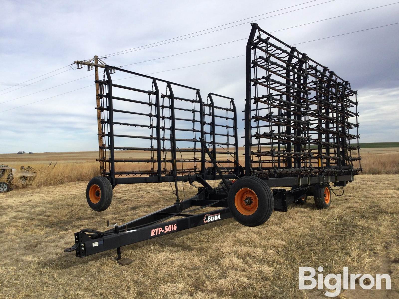 Bison RTP-5016 Pull-Type Harrow, Pin hitch, Hydraulic fold and raise, Railroad spike teeth, 50' wide working width, 9.5-15 tires, SN: 170402038660