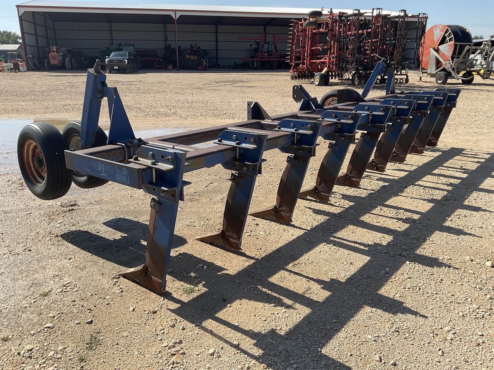Blu-Jet Sub-Tiller 2 9 shank ripper on 30’’ spacing. All the ripper points look to be in good shape. Has the double gauge wheels up front. Super nice ripper!