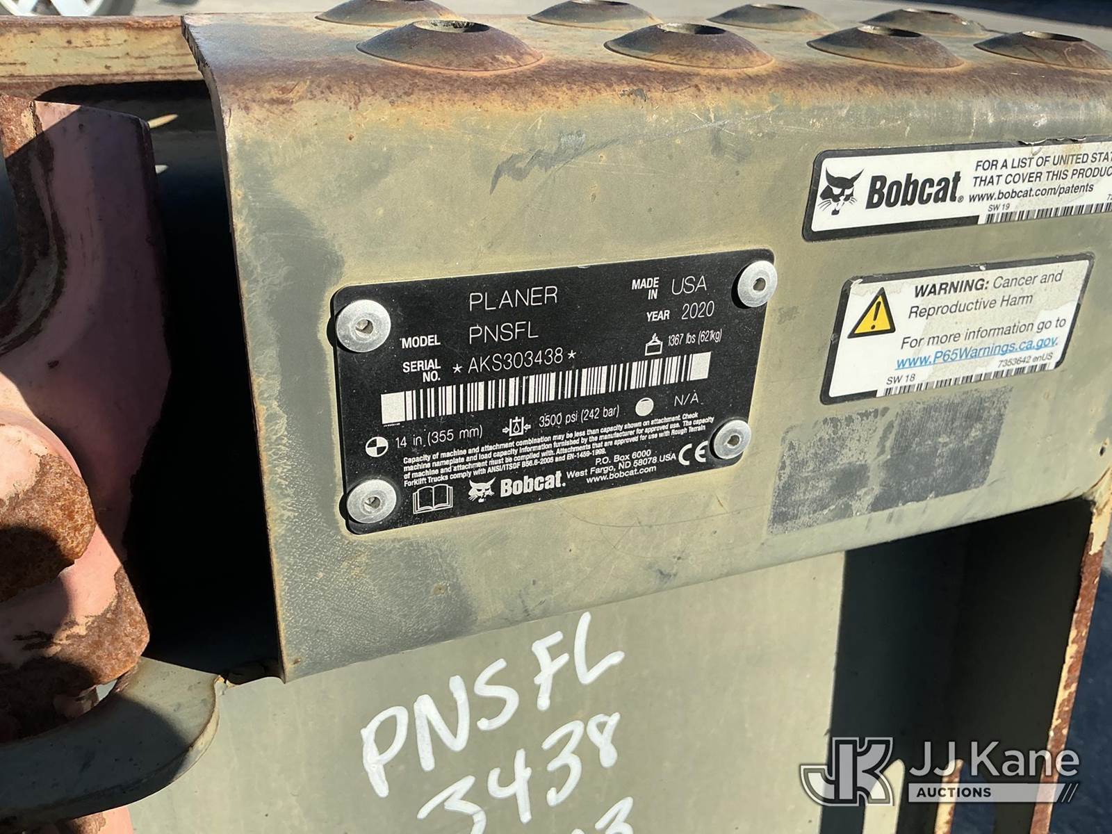 Bobcat Asphalt Grinder Skid Steer Attachment (Used, Conditions Unknown ) NOTE: This unit is being sold AS IS/WHERE IS via Timed Auction and is located in Dixon, CA. Inspection & preview days for this unit are the 2 business days prior to the first day of items closing for this auction, item is located at 8668 Sparling Ln Dixon, CA 95620 and hours of operations are 8a-4p. For pre-sale questions, please contact JJ Kane Staff at (707) 678-8060 (dixon@jjkane.com). Dealer License Number 45696. (Buyer is responsible for removal. Assistance by consignor or JJ Kane Auctions is not assured.)