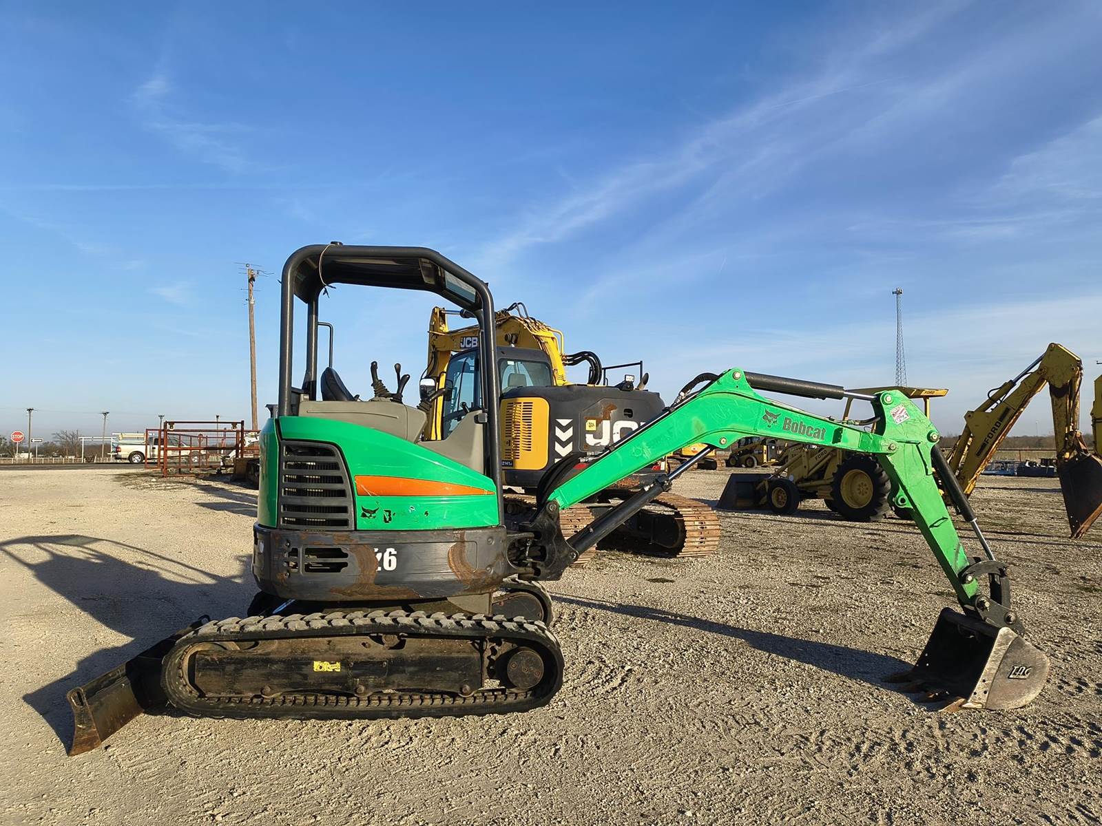2017 BOBCAT E26 MINI EXCAVATOR. FLEET MAINTAINED. NO ISSUES. ONLY 12XX ORIGINAL HRS. AUX HYDRAULICS. QUICK DETACH BUCKET. 2 SPD. HYDRAULIC BLADE. GOOD TRACKS. JOB READY. ALWAYS CALL FOR CURRENT AVAILABILITY. FINANCING AVAILABLE W.A.C. (no in-house). LOWER 48 USA SHIPPING AVAILABLE. CALL (972)57I-9674 OR (972)57I-lO55 TODAY.