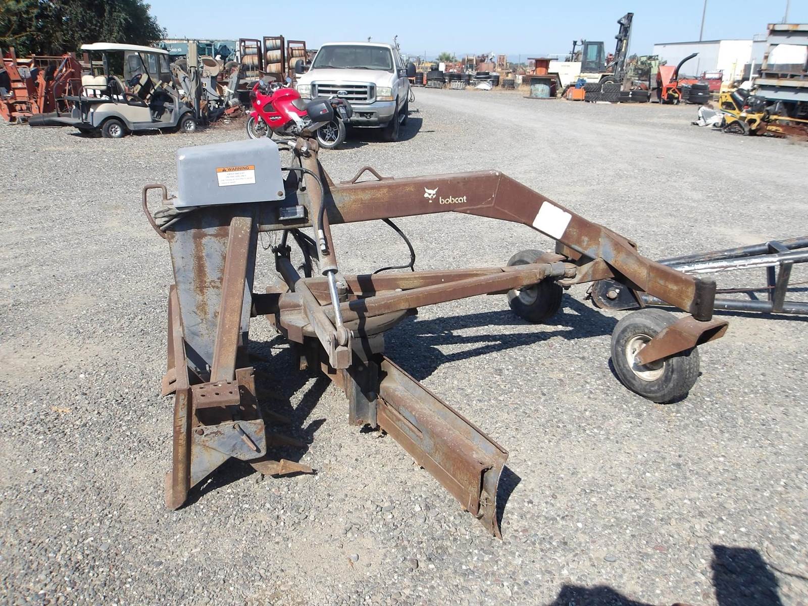 Bobcat Grader, 84 inch wide adjustable moldboard, 6 shank ripper, hydraulic angle, hydraulic tilt, 2 hoses, electric plug, $8,950