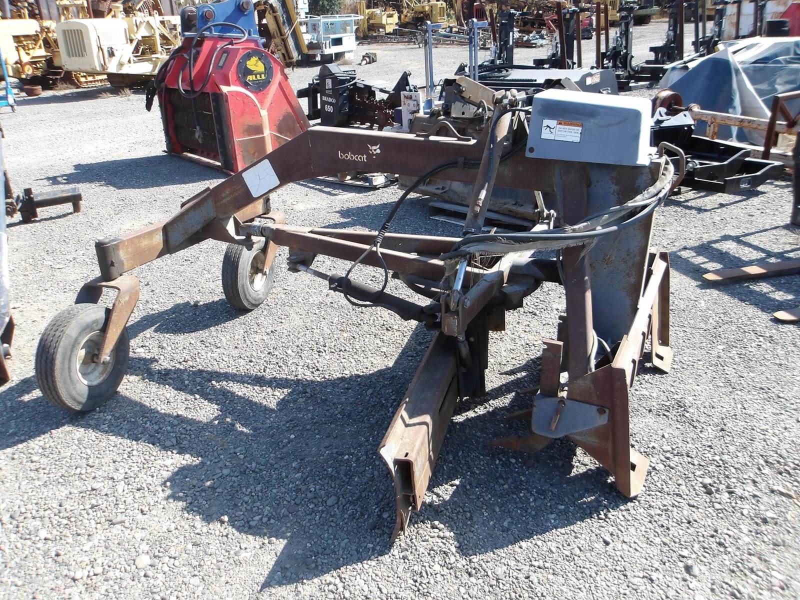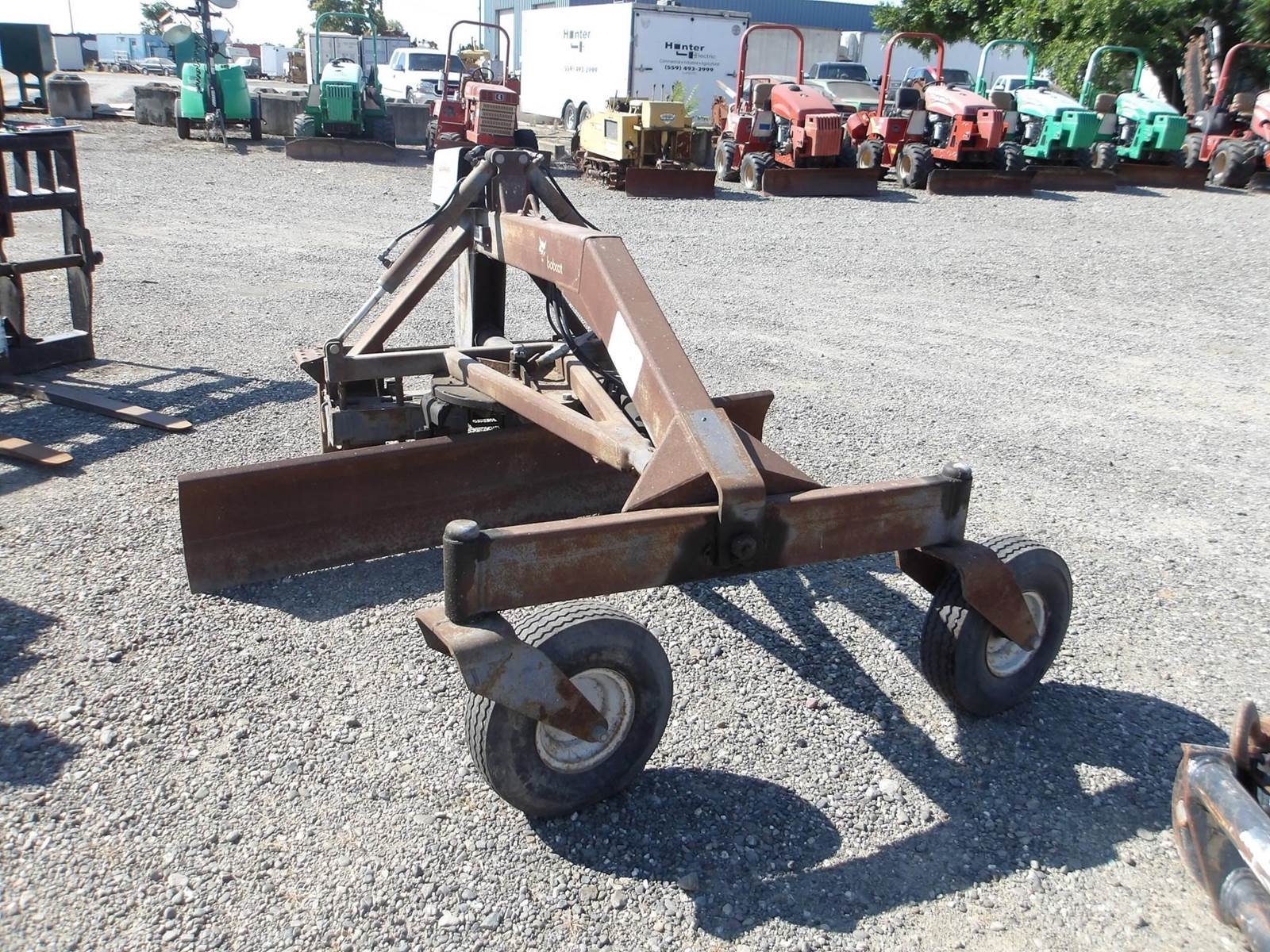 Bobcat Grader, 84 inch wide adjustable moldboard, 6 shank ripper, hydraulic angle, hydraulic tilt, 2 hoses, electric plug, $8,950,