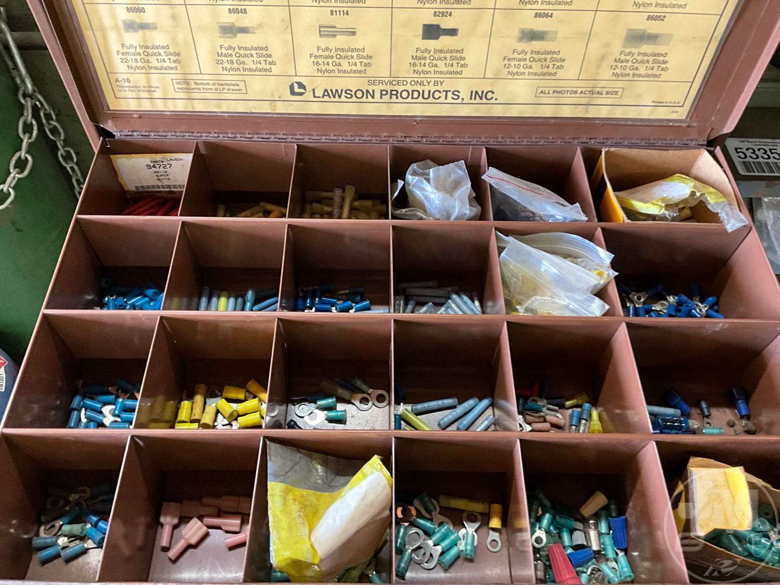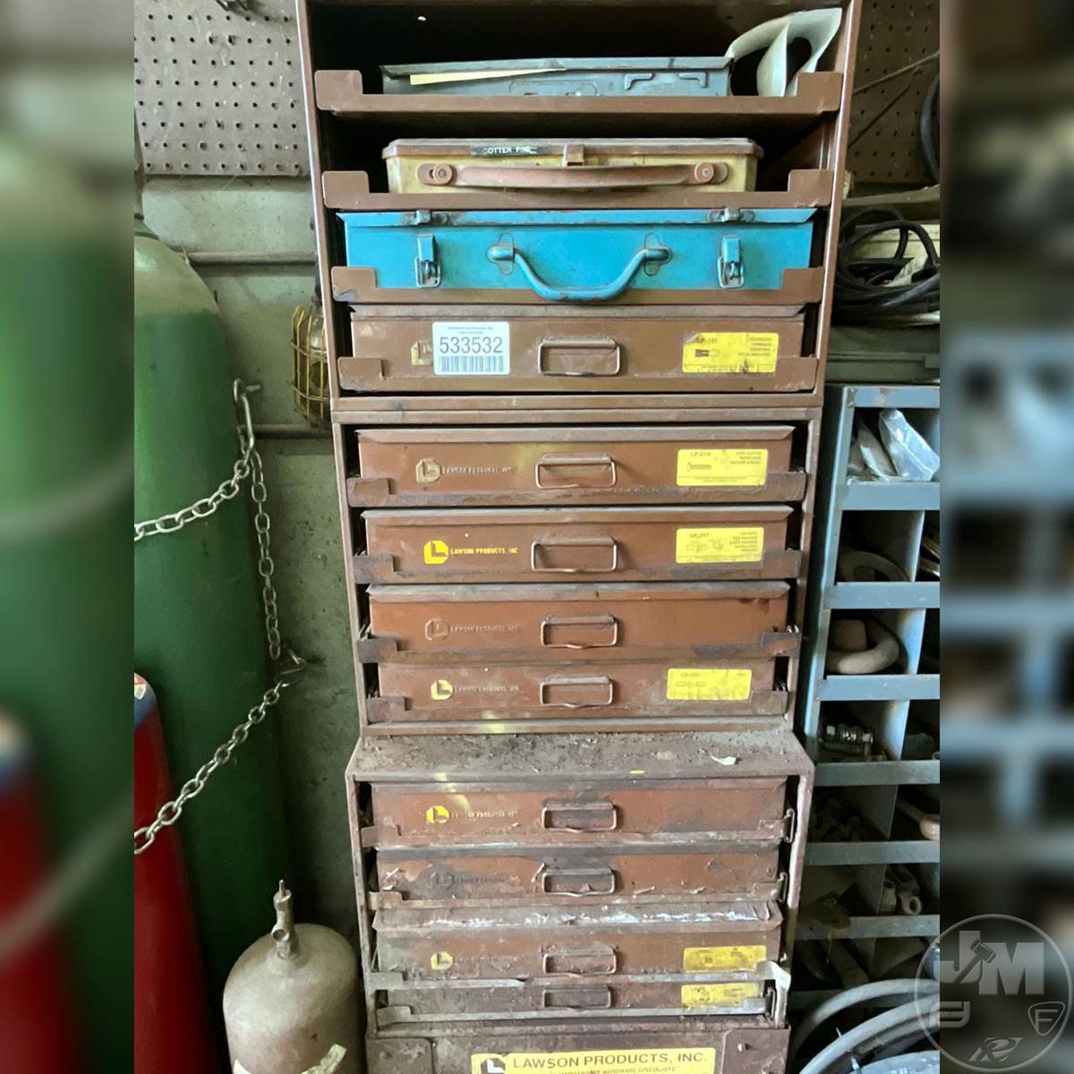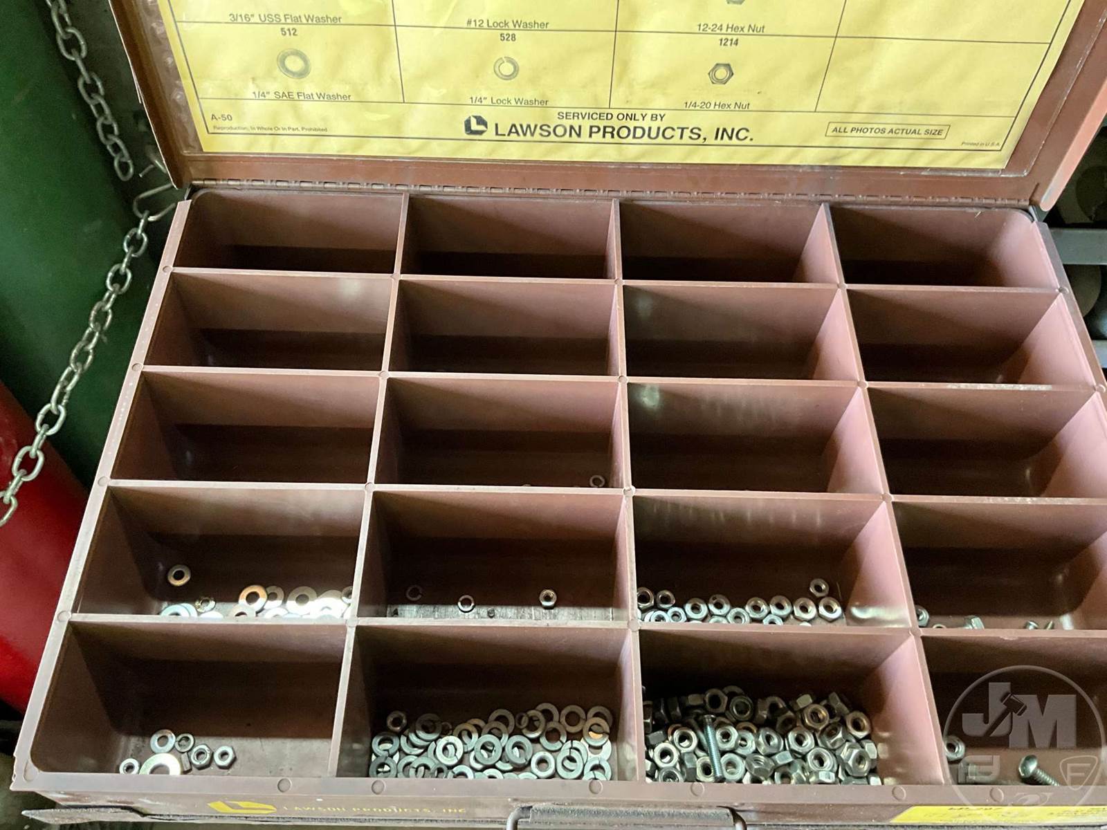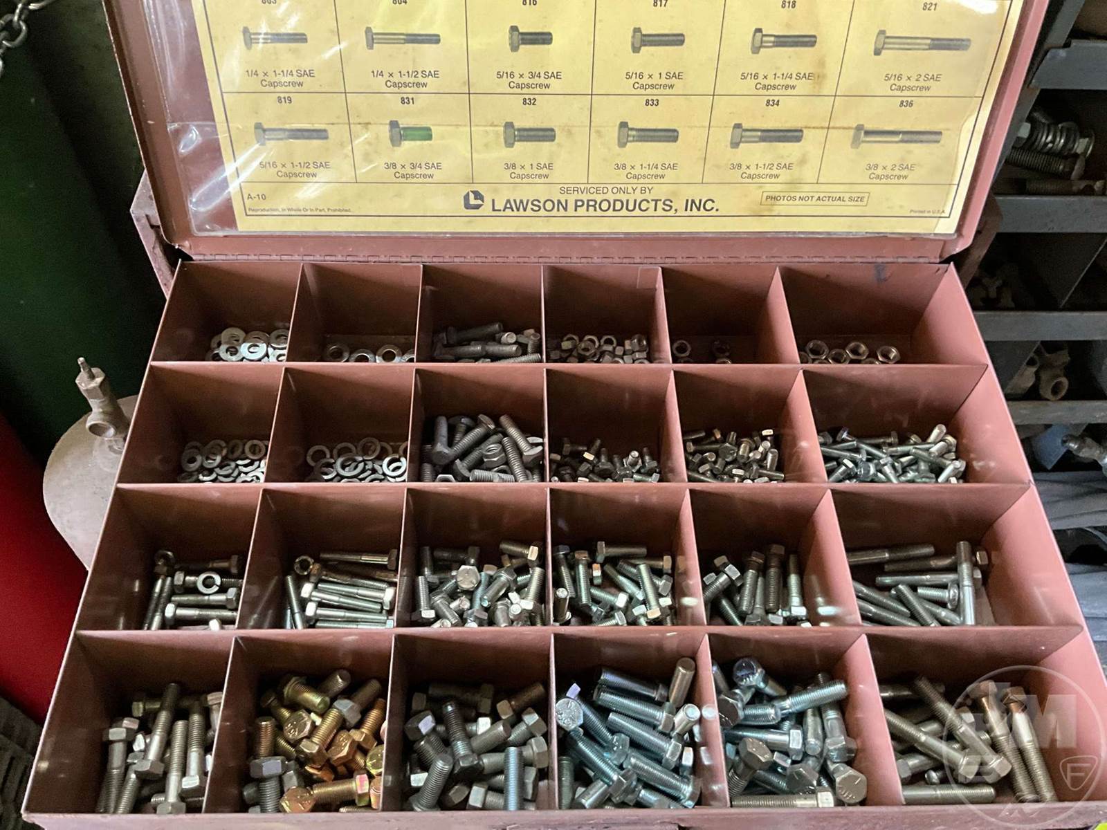 BOLT BIN, PULLOUT BOLT BIN WITH CONTENTS