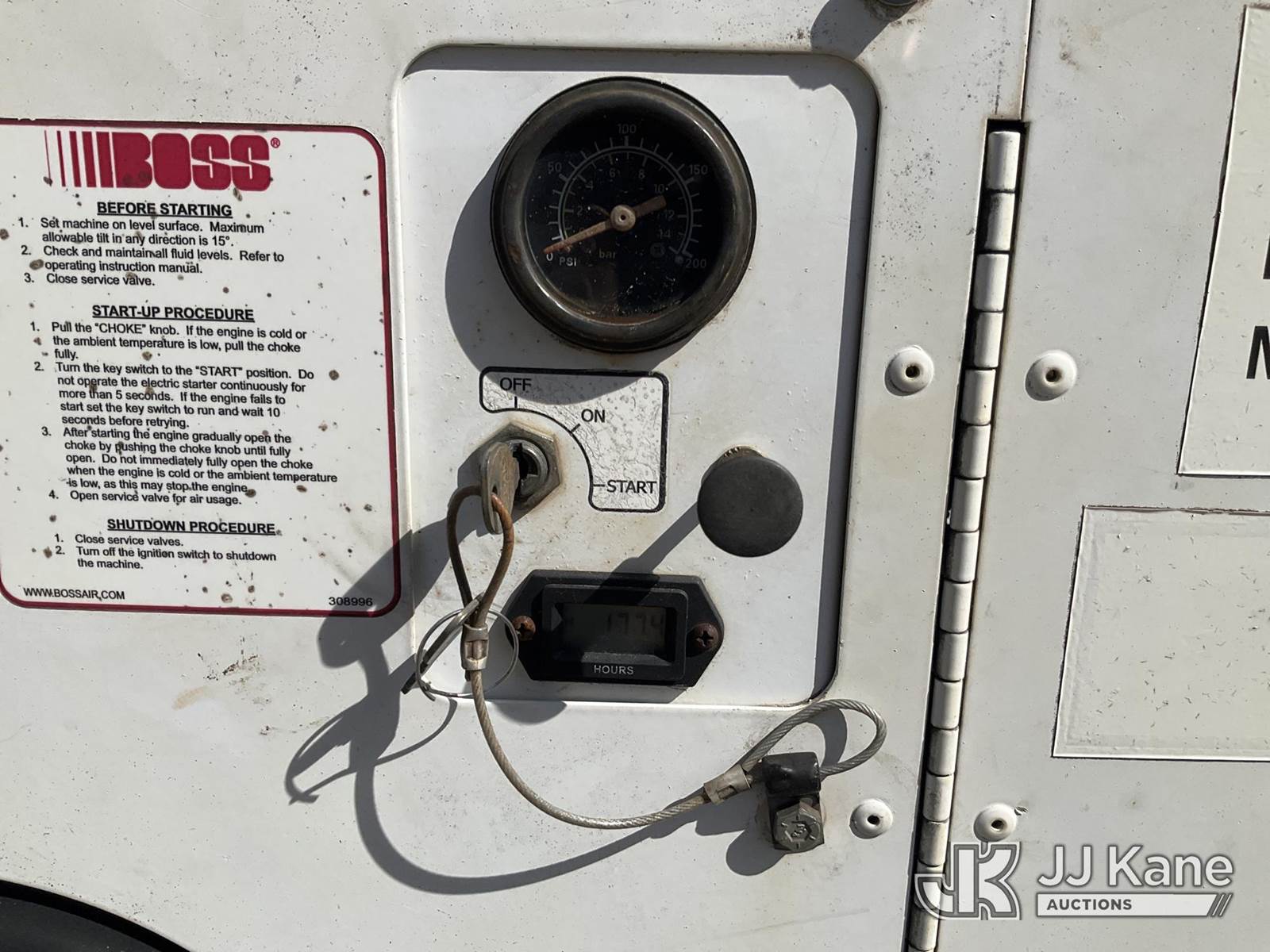 Boss Bullet Air Compressor, s/n 4625107561, Kohler Gas, (Runs & Operates) (Reads 177 hours) NOTE: This unit is being sold AS IS/WHERE IS via Timed Auction and is located in Villa Rica, GA. Inspection & preview days for this unit are the 2 business days prior to the first day of items closing for this auction, item is located at 100 Liberty Rd Villa Rica, GA 30180 and hours of operations are 8a-4p. For pre-sale questions, please contact Office Staff @ (470) 590-8453. (Buyer is responsible for removal. Assistance by consignor or JJ Kane Auctions is not assured.)