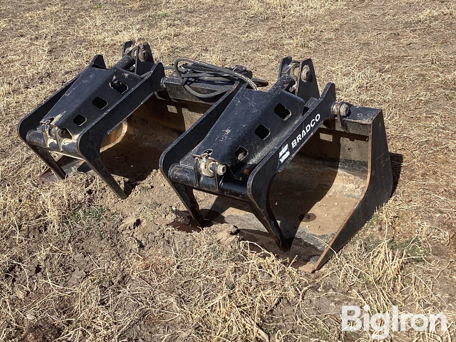 Bradco 103593 Grapple Attachment, 73” Width, Twin Independent 19” Grapples, Flat face Hydraulic Couplers, Universal Skid Steer Mount, SN: 148682