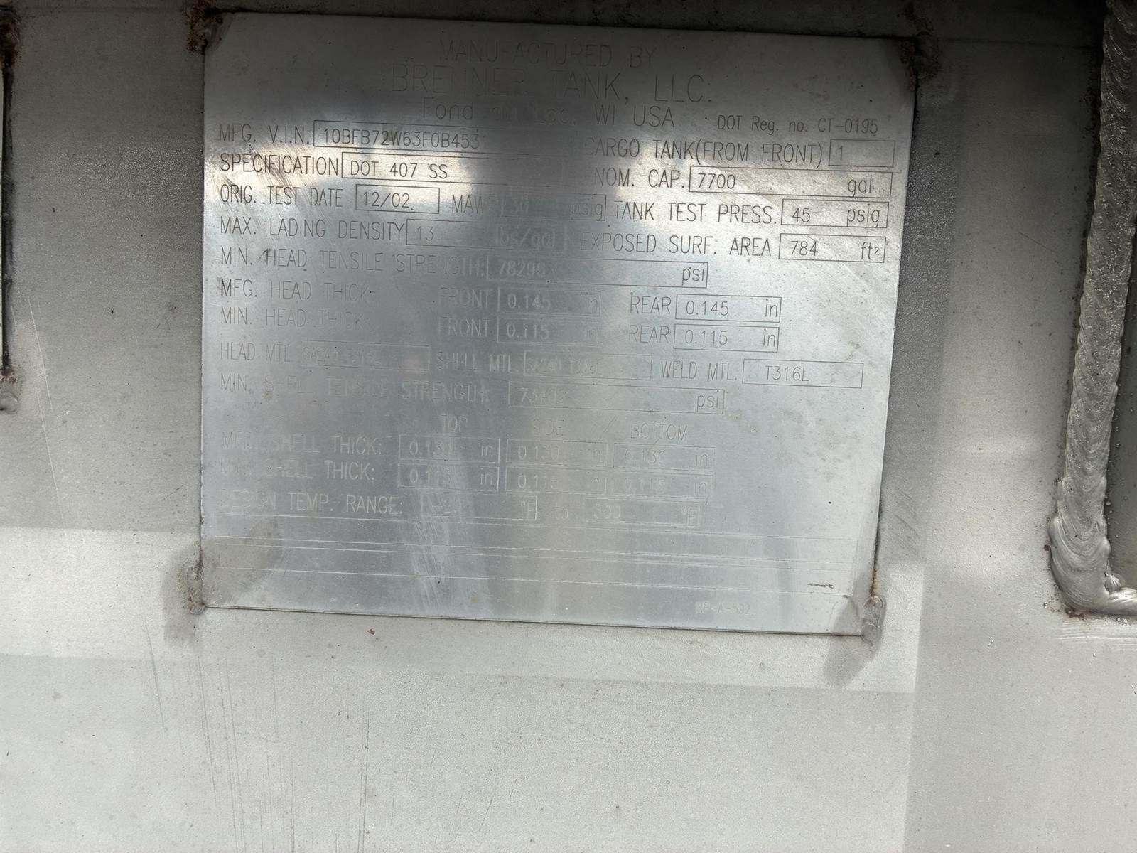 - 7700 Gallon Capacity
