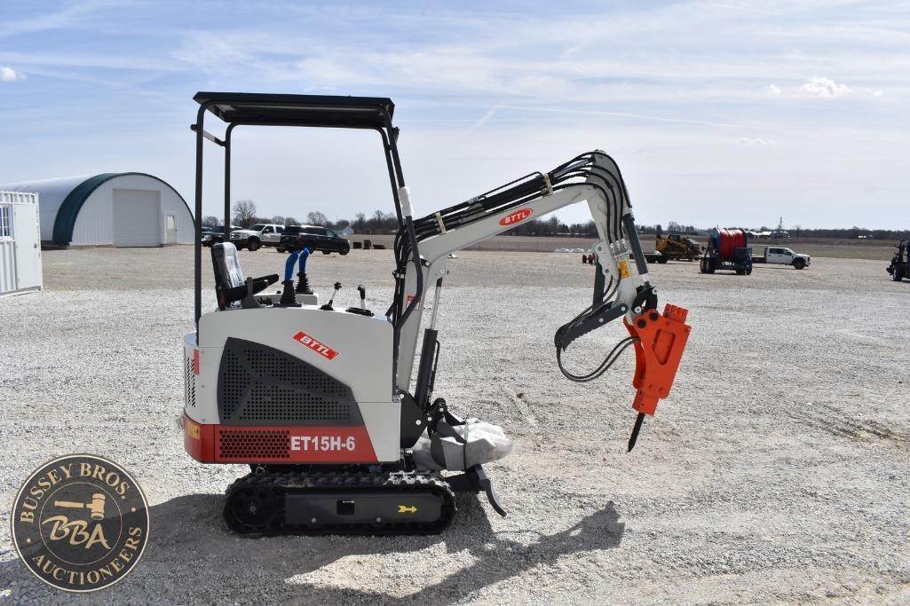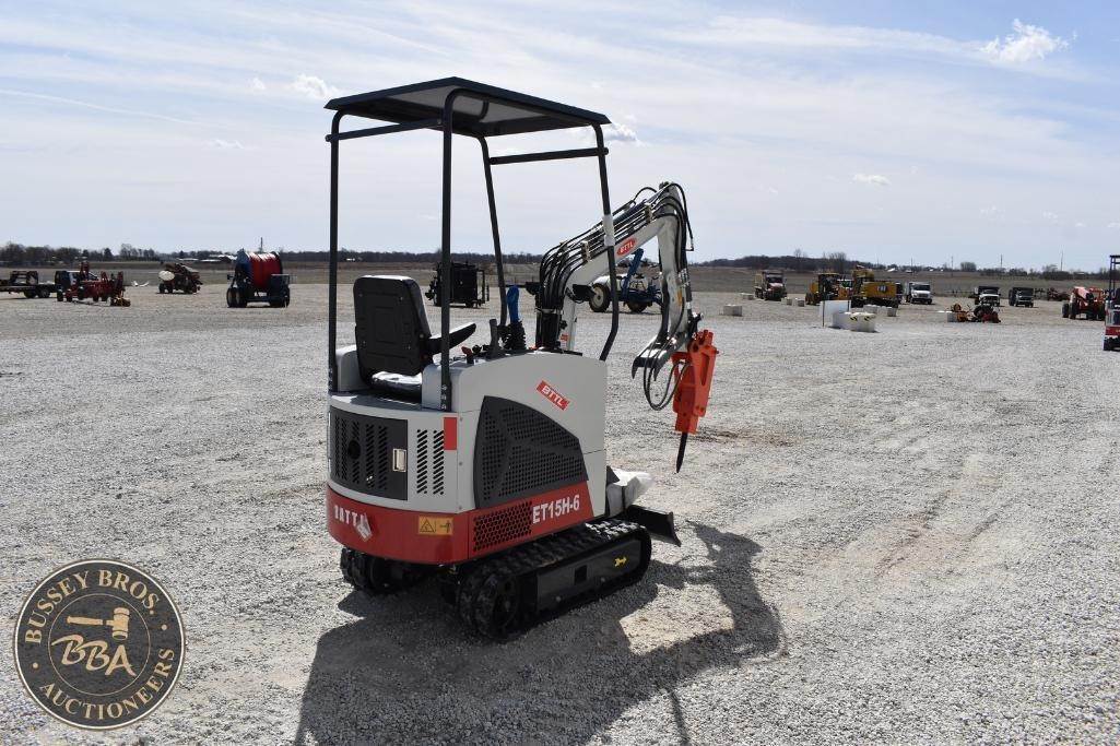 BTTL ET15H-6 Mini Excavator, Hydraulic Breaker Attachment, manual thumb, grading blade, digging bucket, rubber tracks, aux hydraulics, gas engine, toolbox, NEW/UNUSED
