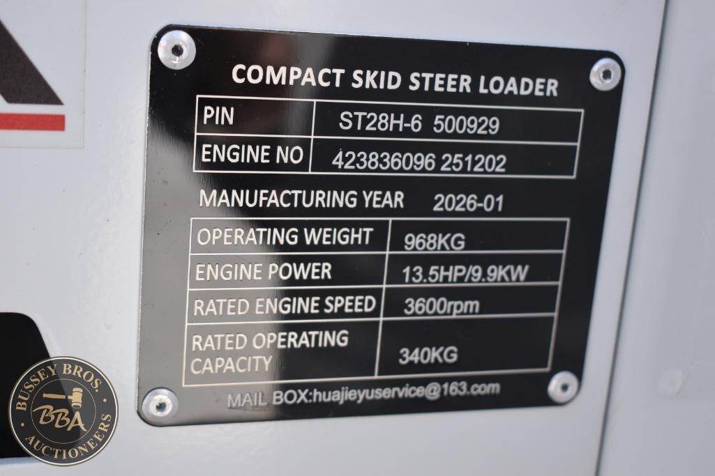 BTTL ST28H-6 Compact Skid Steer Loader, gas engine, rubber tracks, smooth bucket, aux hydraulics, work lights, SN#500929, NEW/UNUSED