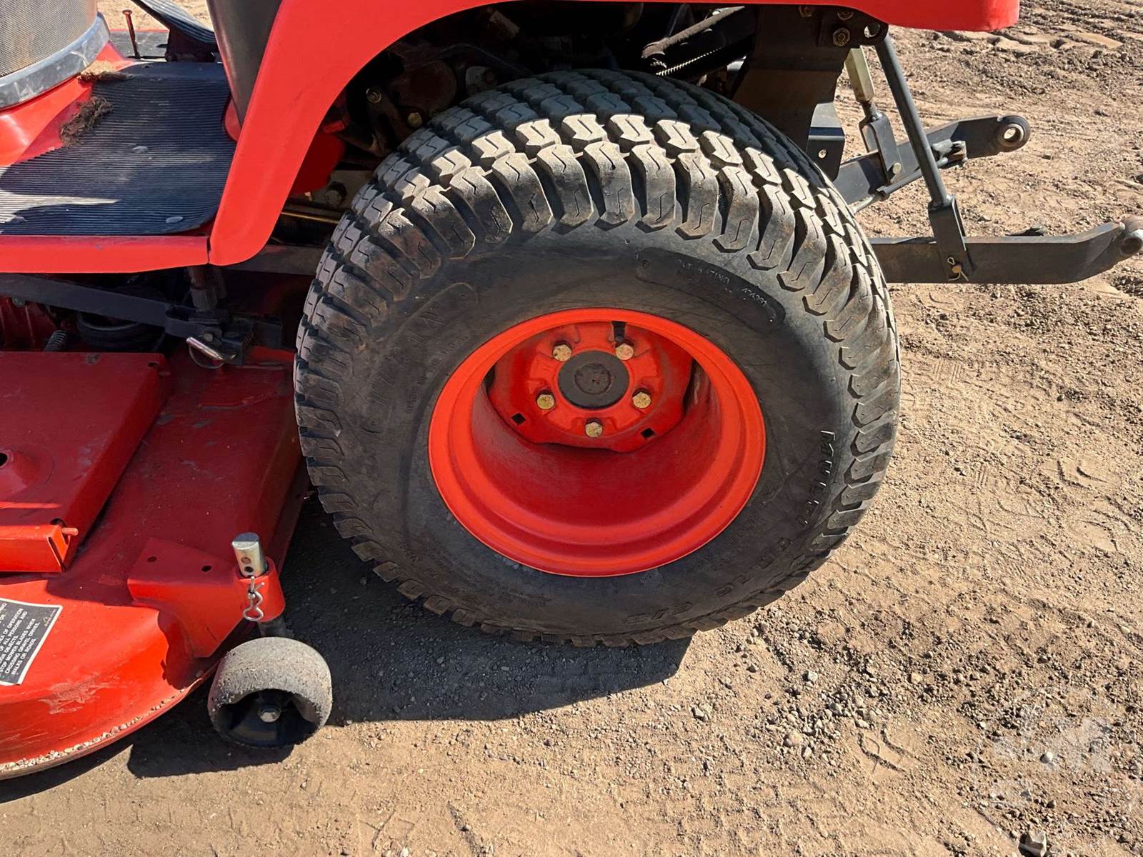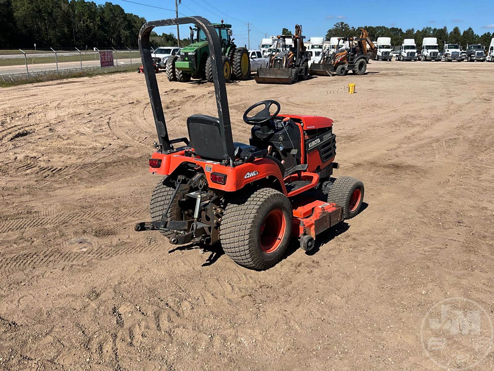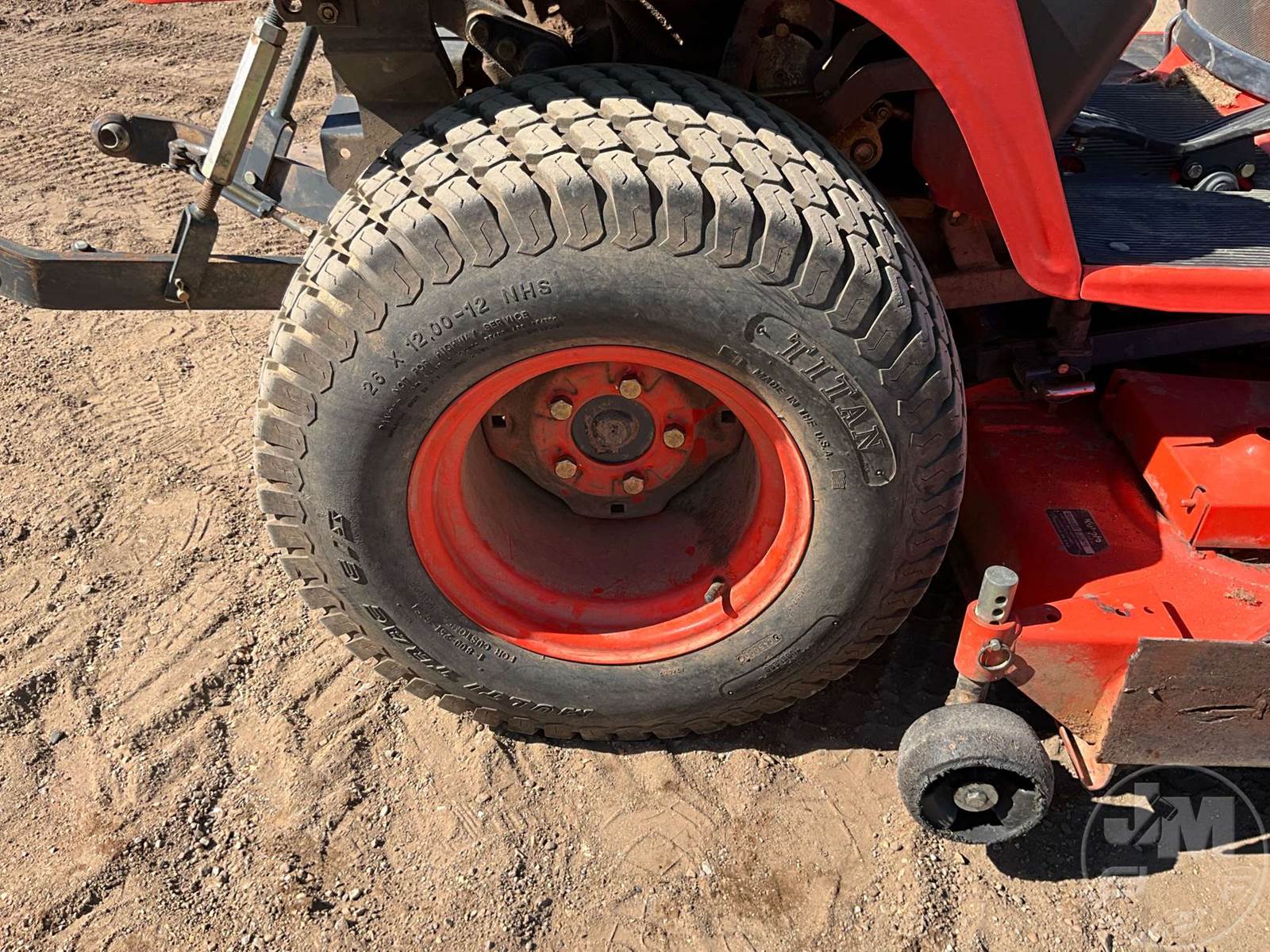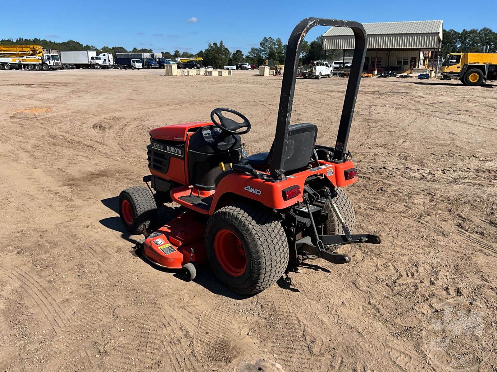 KUBOTA 4X4 TRACTOR, 3 CYL, DIESEL ENGINE, 22 HP, 3 PT HITCH, 540 RPM PTO, HYDROSTATIC TRANSMISSION, MID MOUNT ROTARY MOWER, 26X12.00-12 REAR TIRES, 18X8.50-8 FRONT TIRES, HOUR METER READS: 495
