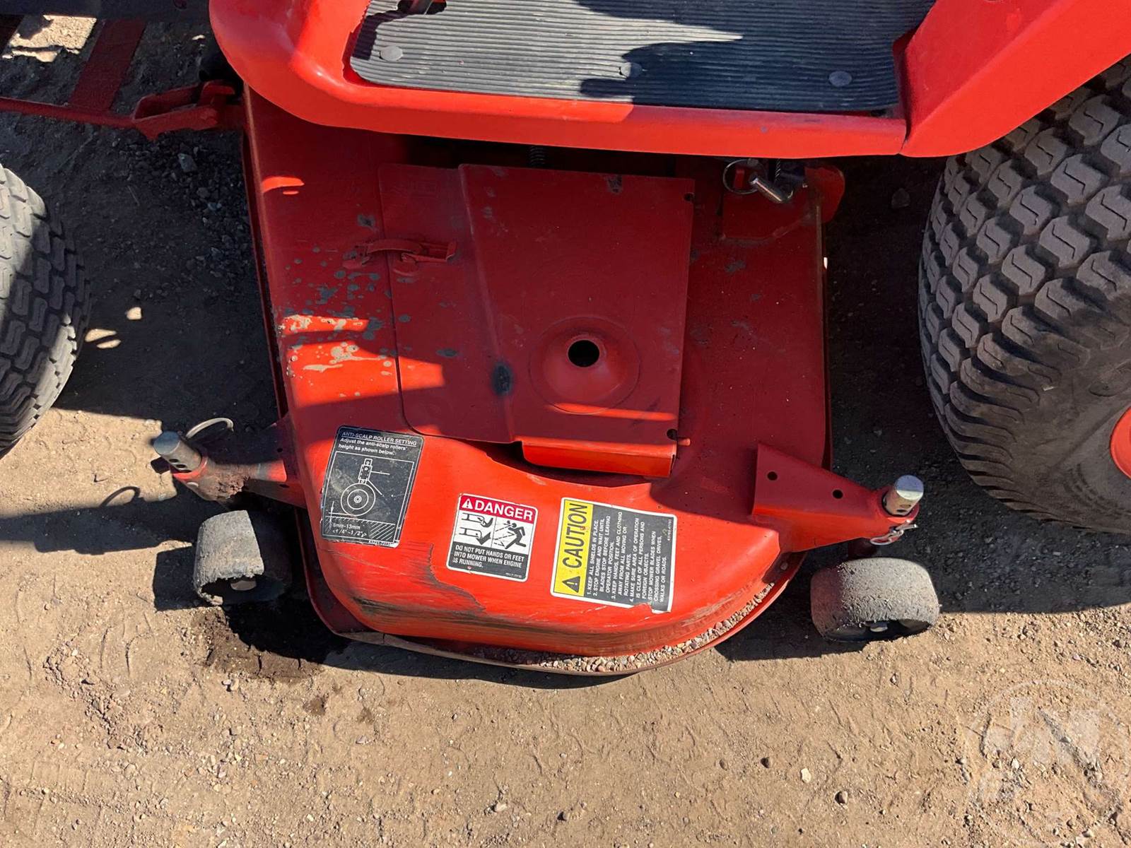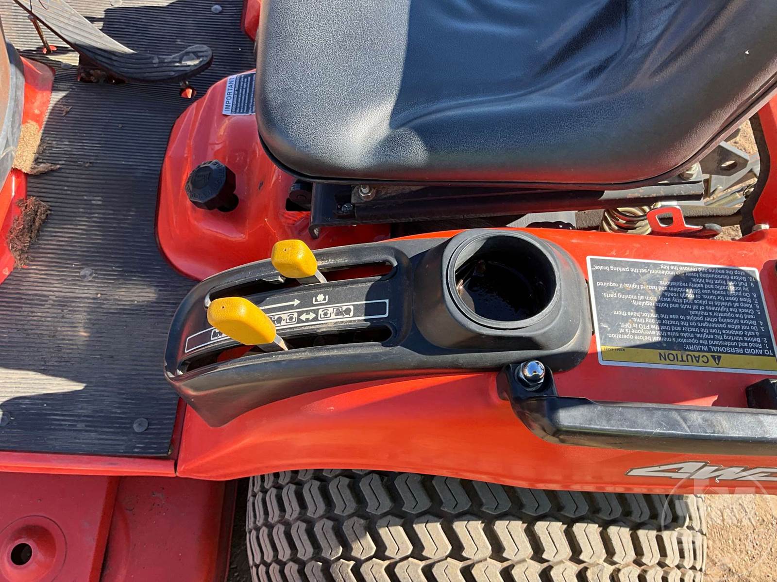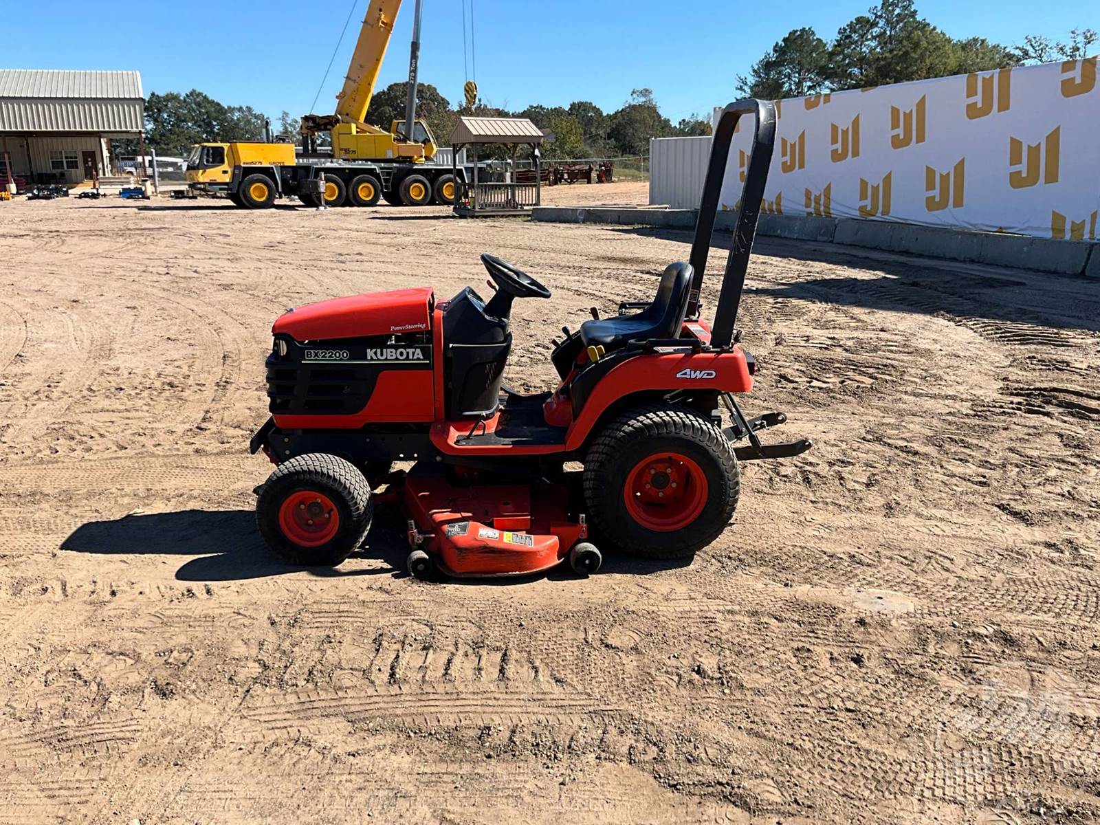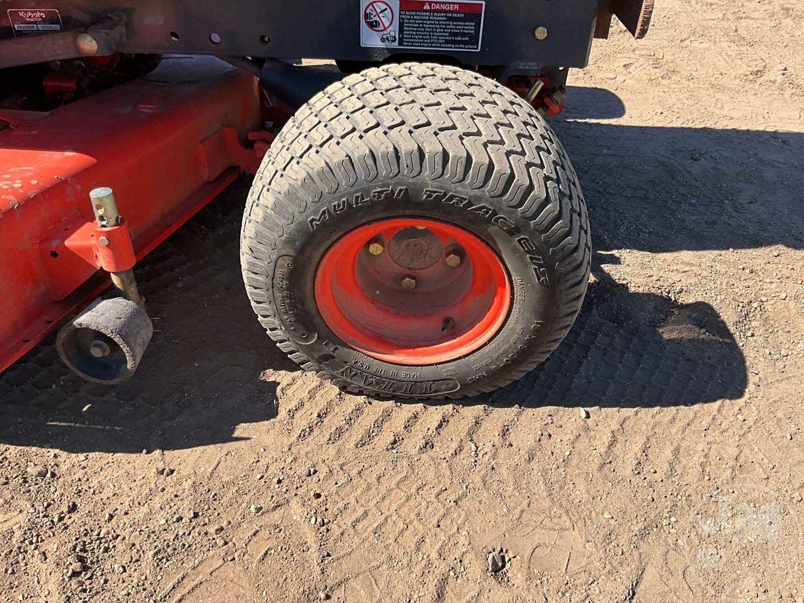 KUBOTA 4X4 TRACTOR, 3 CYL, DIESEL ENGINE, 22 HP, 3 PT HITCH, 540 RPM PTO, HYDROSTATIC TRANSMISSION, MID MOUNT ROTARY MOWER, 26X12.00-12 REAR TIRES, 18X8.50-8 FRONT TIRES, HOUR METER READS: 495