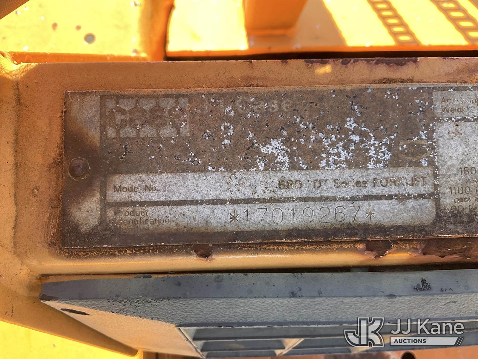 Case 584D Pneumatic Tired Forklift, s/n 17019267, Case diesel, 4-spd, with 336 in 3 stage mast, 4 ft forks, hyd side shift & ROPS, (Runs, Moves & Operates ) (Reads 1,791 hours) NOTE: This unit is being sold AS IS/WHERE IS via Timed Auction and is located in China Grove, NC. Inspection & preview days for this unit are the 2 business days prior to the first day of items closing for this auction, item is located at 820 E NC Hwy 152 China Grove, NC 28023 and hours of operations are 8a-4p. For pre-sale questions, please contact Office Staff @ (704) 674-1113. (Buyer is responsible for removal. Assistance by consignor or JJ Kane Auctions is not assured.)