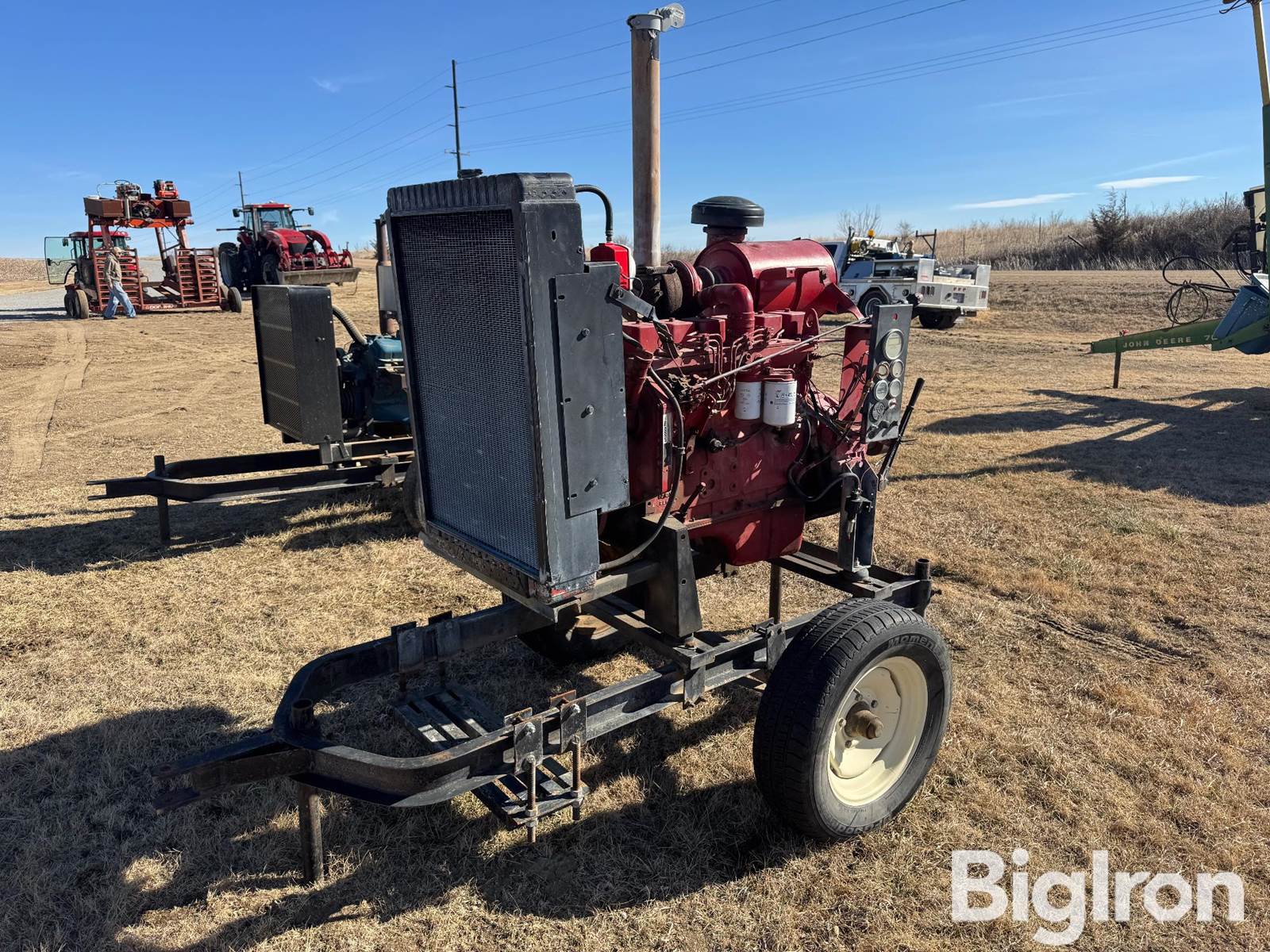 Case 6T-590 Diesel Power Unit, 7,571 Hrs Showing, 6 Cyl Turbo Diesel Engine, Mounted On Cart with Sliding Axle and Stans, Radiator, Safety Gauges, Hand Clutch, Pulley For Generator Belts, Generator Bracket, 215/70R15 Tires, SN: 44401076