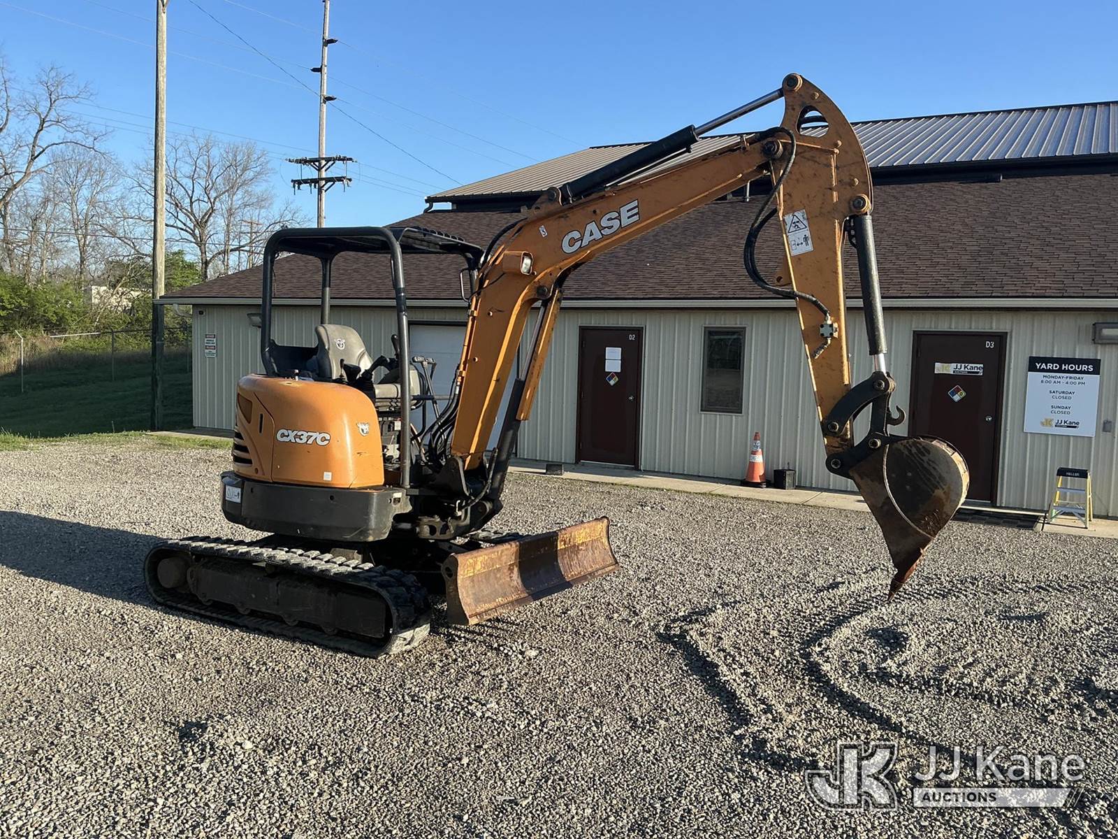 Case CX37C Mini Hydraulic Excavator, s/n NSUC370RNZLN56468, Yanmar diesel, Hydraulic Drive, with aux. hyd. QD, backfill blade, rubber tracks & ROPS, (Runs, Moves & Operates) (Hours Unknown, Body/Paint Damage) NOTE: This unit is being sold AS IS/WHERE IS via Timed Auction and is located in Fort Wayne, IN. Inspection & preview days for this unit are the 2 business days prior to the first day of items closing for this auction, item is located at 3020 Commercial Rd Fort Wayne, IN 46809 and hours of operations are 8a-4p. For pre-sale questions, please contact Eric Mcintosh @ (260) 205-2483 (Buyer is responsible for removal. Assistance by consignor or JJ Kane Auctions is not assured.)