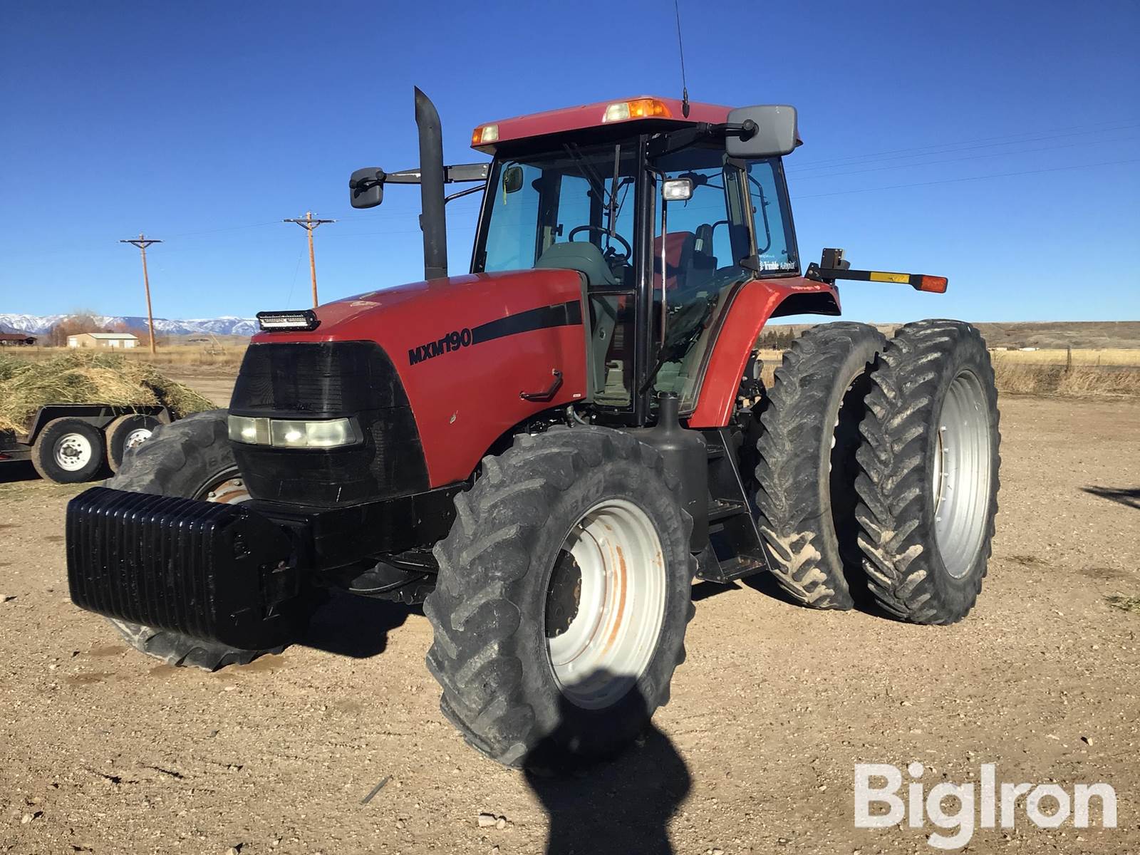 Case IH MXM190 MFWD Tractor, 9,677 hrs showing, 190 hp, 7.5L 6-Cyl Turbocharged Engine, Case IH Transmission, 19 Forward Speeds, 6 Reverse Speeds, Large 1000 PTO, 3 Hydraulic Outlets, Rear Fender 3-Pt Hitch Control, 3-Point Hitch, Hydraulic top Link, Differential Lock, 380/85R30 Front Tires, 380/90R46 Rear Tire Size, Rear Duals, Full Set Front Weights, Standard Cloth Seat