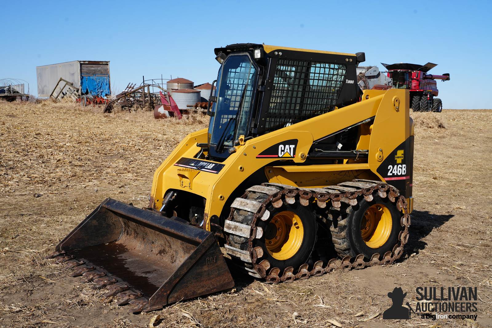 Caterpillar 246B Skid Steer, single speed, aux hyd, Loegering 15" steel grouser pads, SN: CAT0246BTPAT01332