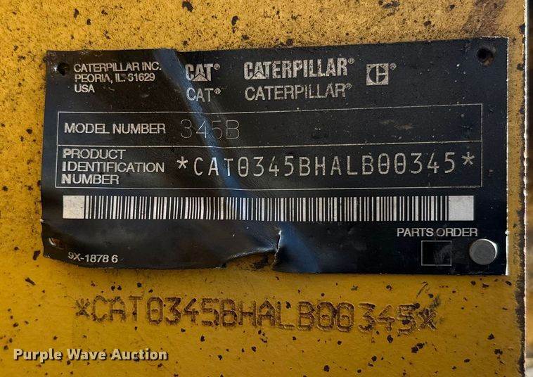 2008 Caterpillar 345C excavator, Hours: 19,336 on meter, Serial: CAT0345CCESD00245, Engine, Caterpillar C13 Acert, Serial: 13102893,...