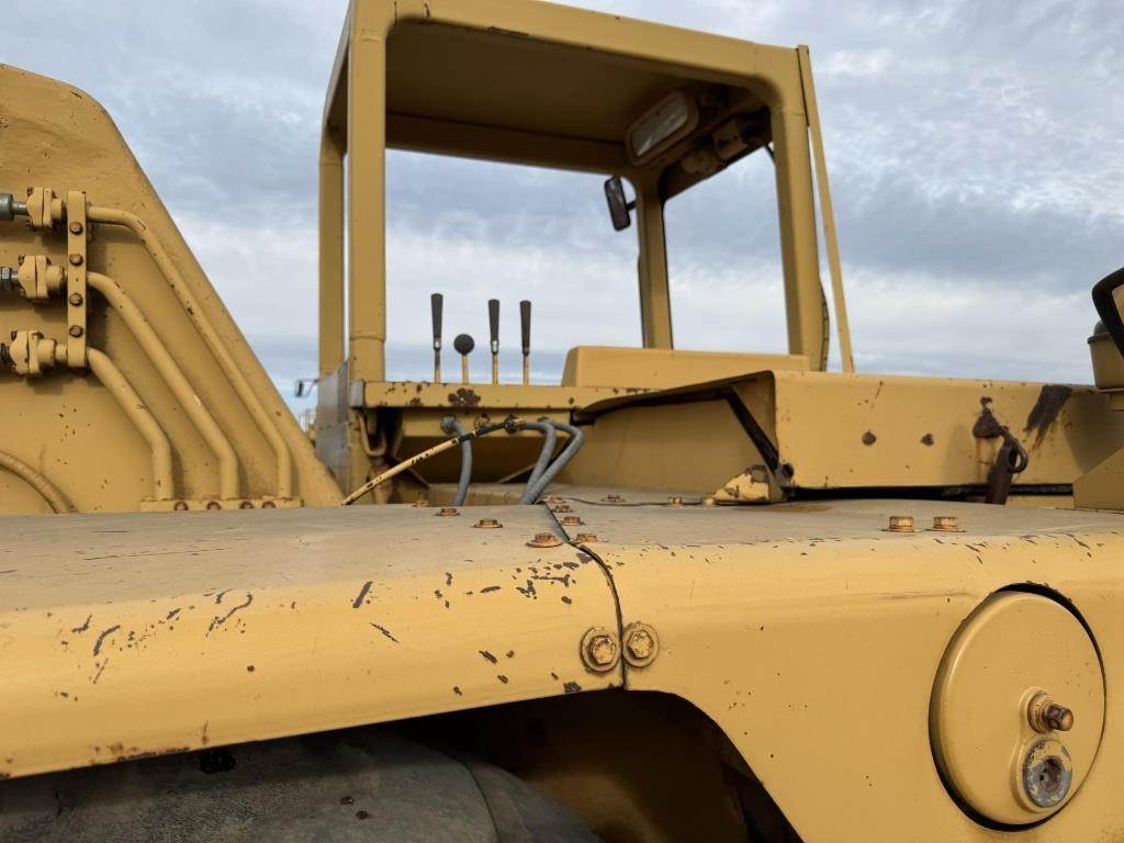 Location: Albertville, MN CAT 3208 Diesel Engine, OROPS, Joystick Controls, Tires 23.5-25, Scraper SN-72M5855, Scraper Width 90" Length 128", Overall Length 380"; Seller Note:"Oil Leak on Scraper" Serial: 38W5955