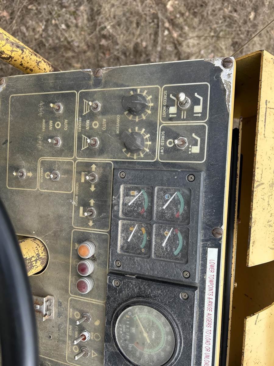 Caterpillar 3116 Turbo Diesel Engine, Hydrostatic Drive, Approx. 131" Hopper, Dual Conveyer, (2) 3' Augers, Berm/Slope/Crown/Height Screed Controls, Approx. 19' Max Screed Extension, Diesel Sprayers, Approx. 17" Track Width, Approx. 9' Overall Track Width, Misc Parts/Manuals in Crate Included