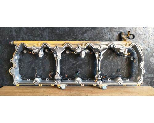 C15 ACERT Rocker Housing, Rocker Box, Valve Cover Base, w/ Injector Harness and Jake Harness. Has Partially Stripped Valve Cover Bolt Hole. Part# 234-5007
