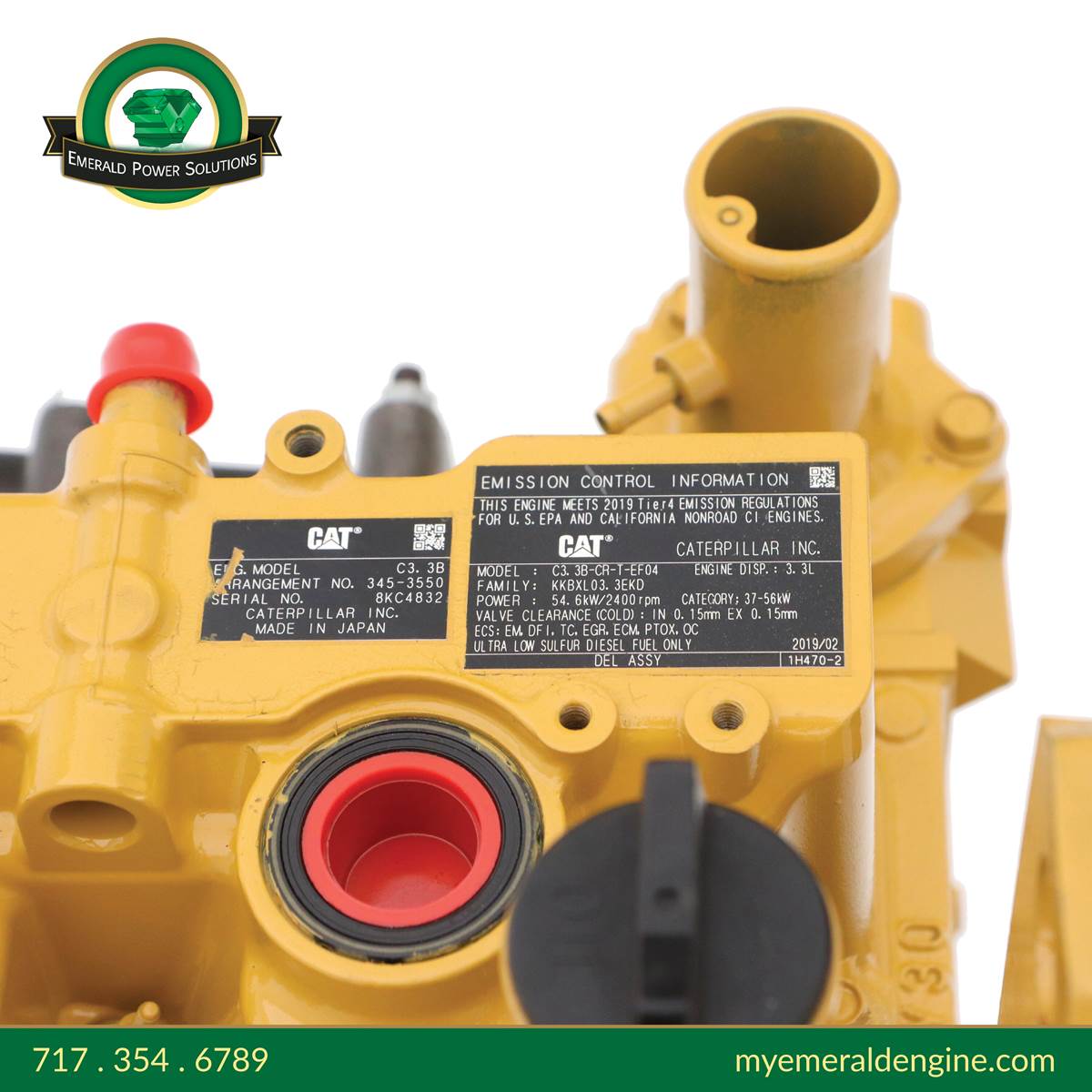 Caterpillar C3.3B Common Rail, Platinum Long Block, Re-manufactured with OEM Parts, Arraignment 345-3550.