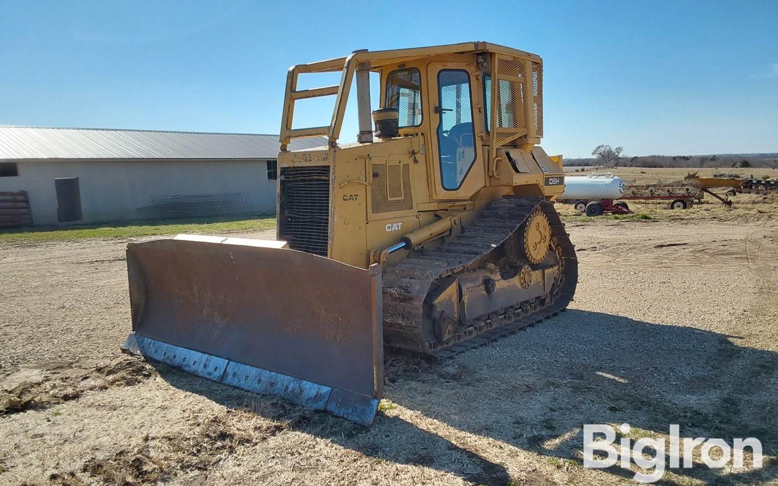 Caterpillar D5H Crawler Dozer, CAT 3304 4-cylinder Diesel engine, 3-speed power shift transmission, 10-1/2' 6-way blade, 20" tracks, rear drawbar, enclosed cab w/ heater, brush guard, suspension seat, SN: 3MD00448
