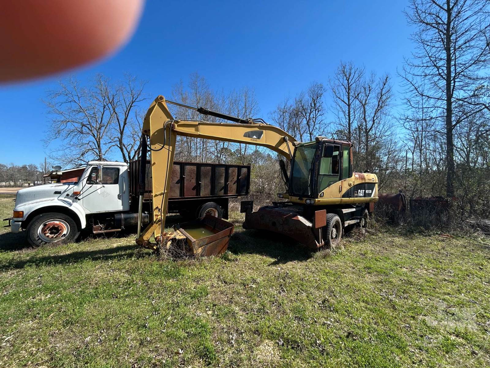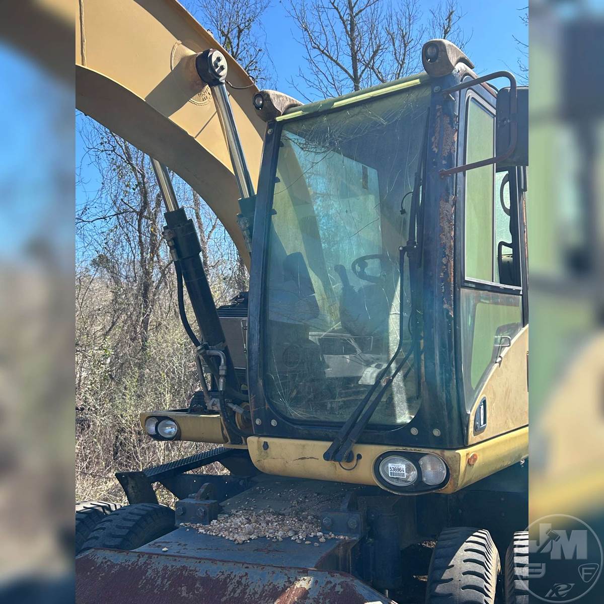 EXCAVATOR, CAB, ENGINE ISSUES, Â MOBILE EXCAVATOR, 4 OUTRIGGERS, DUAL TIRES, CLEAN OUT BUCKET, HYD COUPLER, AUX HYD, HOUR METER READS: CNV, ****INOP****, *** BUYERS RESPONSIBLE FOR ALL LOADING***