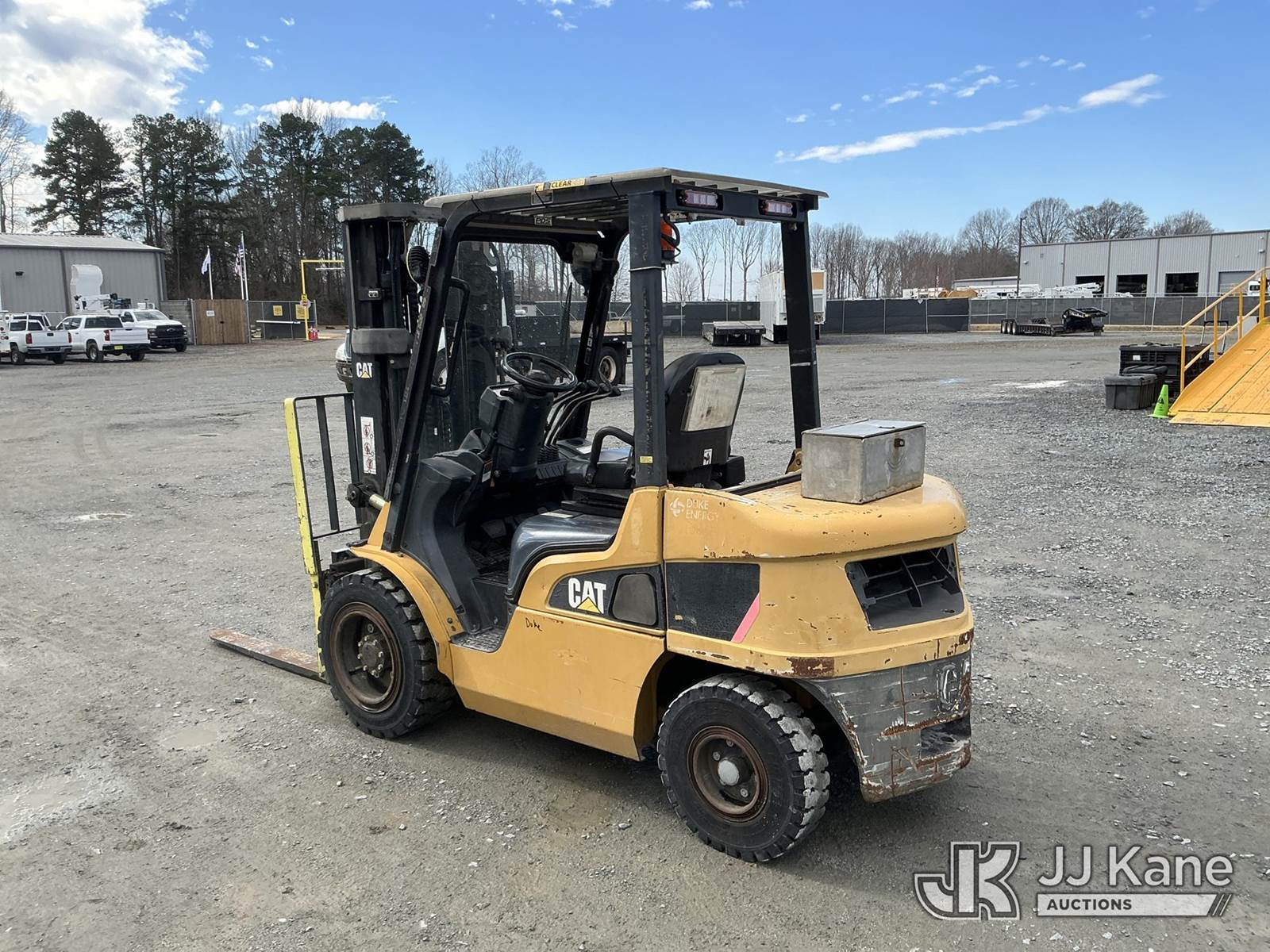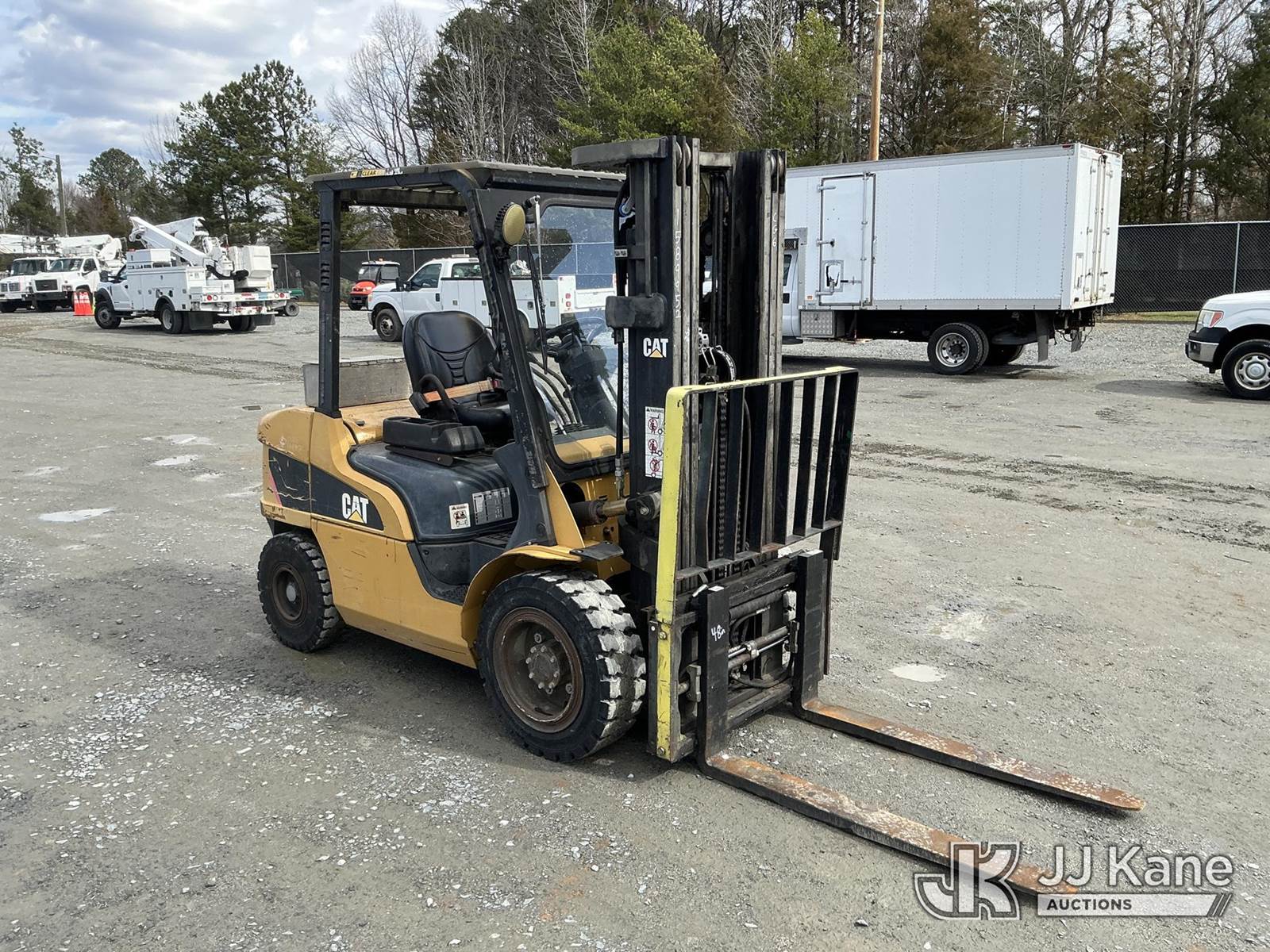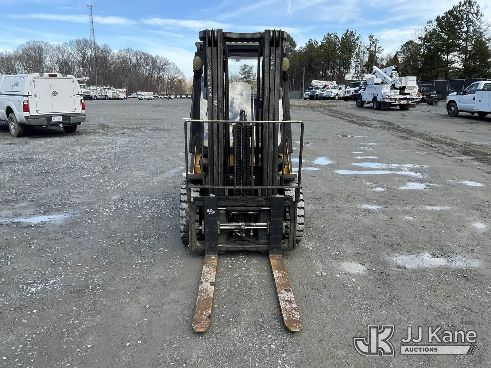 Caterpillar P6000 Solid Tired Forklift, s/n AT14E20427, 4-cyl, diesel, Shuttle, with 186in 3 stage mast, 48in forks, 5800lb lift capacity, hyd side shift, hyd in & out & ROPS, JJ Kane decommissioned (Duke Unit) (Runs, Moves & Operates ) (Reads 5,209 hours) NOTE: This unit is being sold AS IS/WHERE IS via Timed Auction and is located in China Grove, NC. Inspection & preview days for this unit are the 2 business days prior to the first day of items closing for this auction, item is located at 820 E NC Hwy 152 China Grove, NC 28023 and hours of operations are 8a-4p. For pre-sale questions, please contact Office Staff @ (704) 674-1113. (Buyer is responsible for removal. Assistance by consignor or JJ Kane Auctions is not assured.)