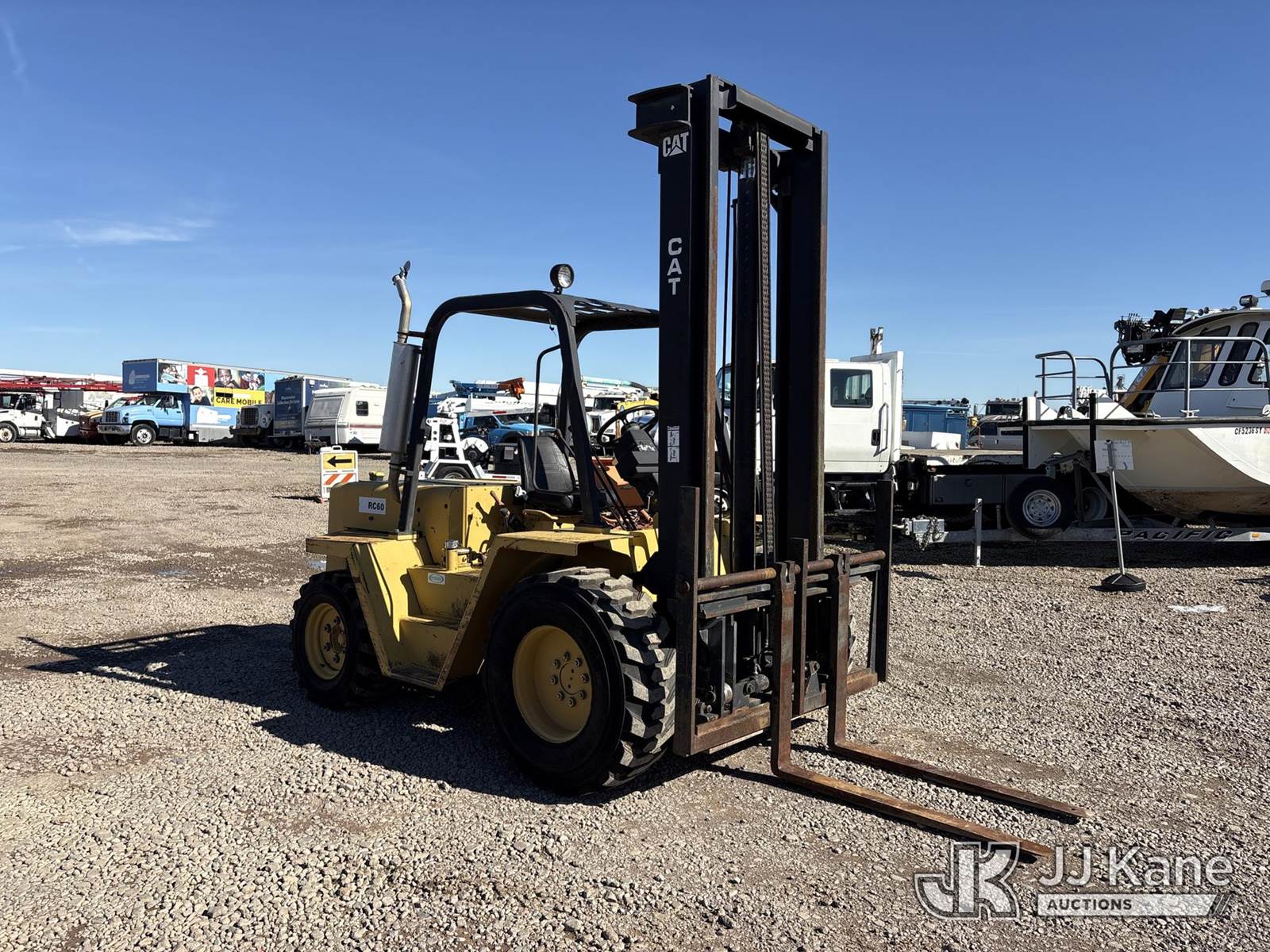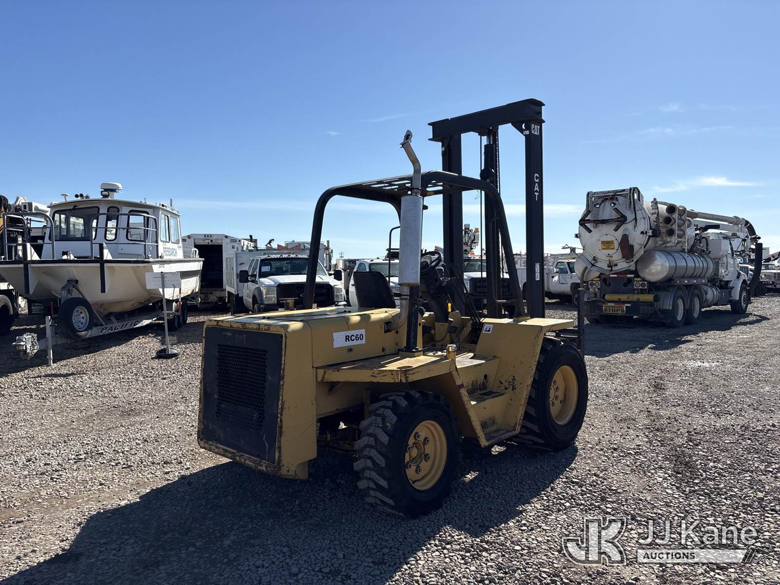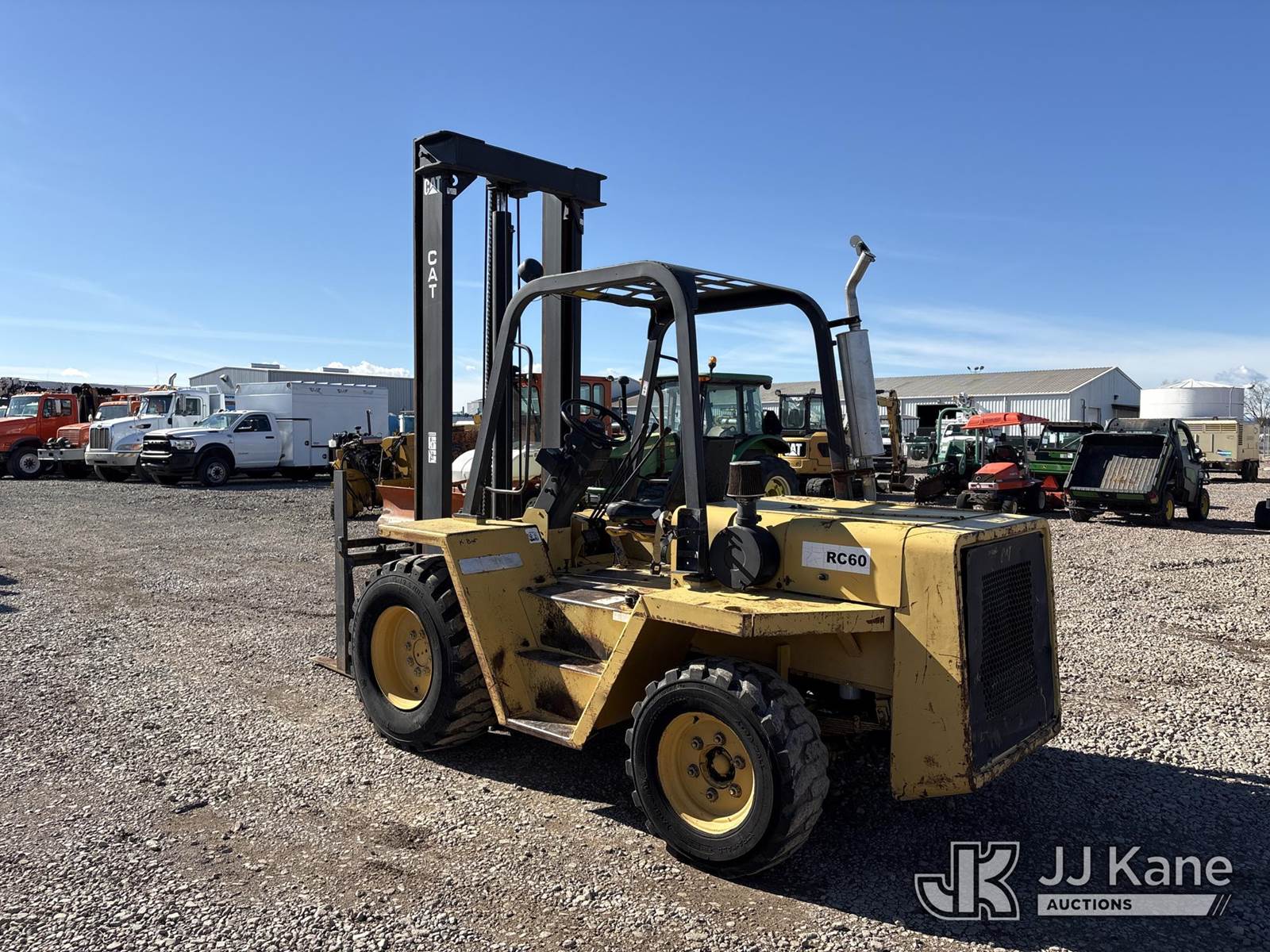 Caterpillar RC60 Rubber Tired Forklift, 4-cyl, diesel, 4-spd, (Runs, Moves & Operates, Information Placard Missing) (Reads 873 hours) NOTE: This unit is being sold AS IS/WHERE IS via Timed Auction and is located in Dixon, CA. Inspection & preview days for this unit are the 2 business days prior to the first day of items closing for this auction, item is located at 8668 Sparling Ln Dixon, CA 95620 and hours of operations are 8a-4p. For pre-sale questions, please contact JJ Kane Staff at (707) 678-8060 (dixon@jjkane.com). Dealer License Number 45696. (Buyer is responsible for removal. Assistance by consignor or JJ Kane Auctions is not assured.)