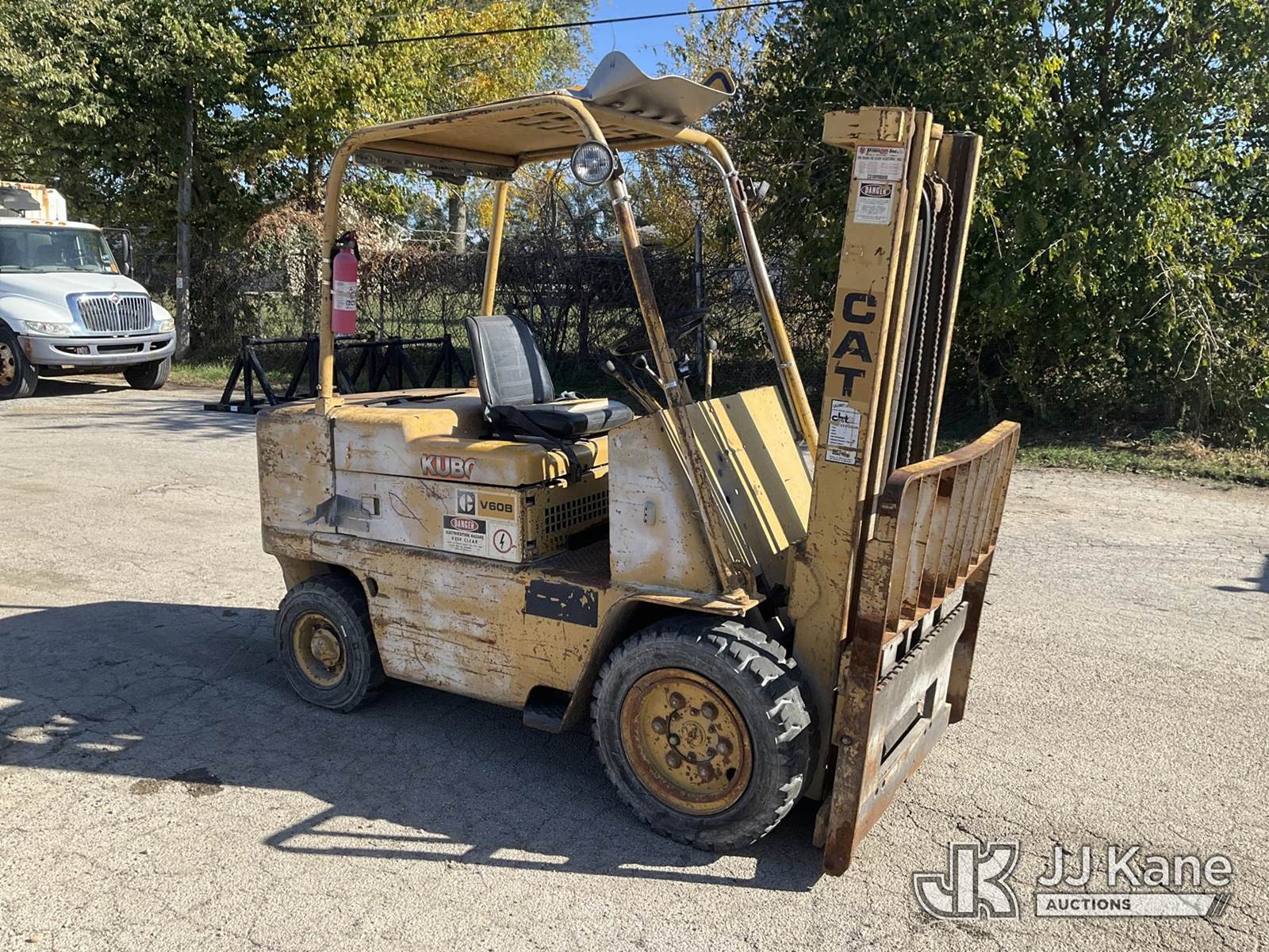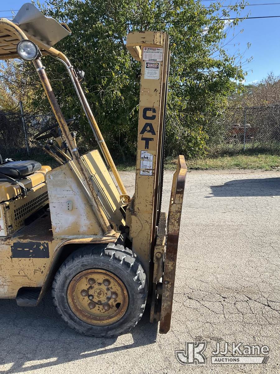 Caterpillar V60B Pneumatic Tired Forklift, 6-cyl gas, Shuttle, (Has Power-Does Not Crank-Condition Unknown(No VIN Plate, No Hour Meter, No Forks) NOTE: This unit is being sold AS IS/WHERE IS via Timed Auction and is located in South Beloit, IL. Inspection & preview days for this unit are the 2 business days prior to the first day of items closing for this auction, item is located at 14354 Dearborn Ave South Beloit, IL and hours of operations are 8a-4p. For pre-sale questions, please contact Derek Eklund at (608) 904-0618 or (derek.eklund@jjkane.com). (Buyer is responsible for removal. Assistance by consignor or JJ Kane Auctioneers is not assured.)