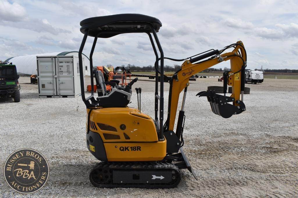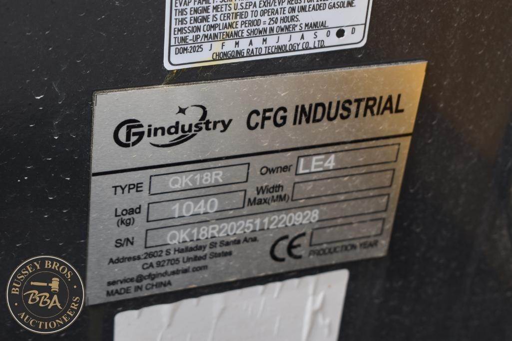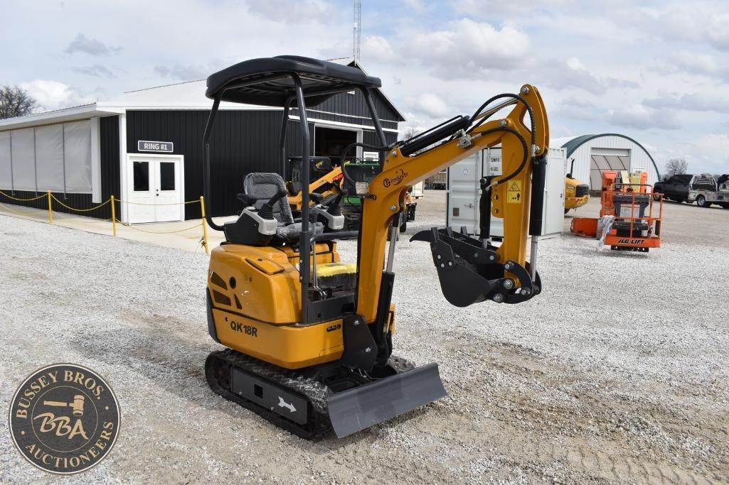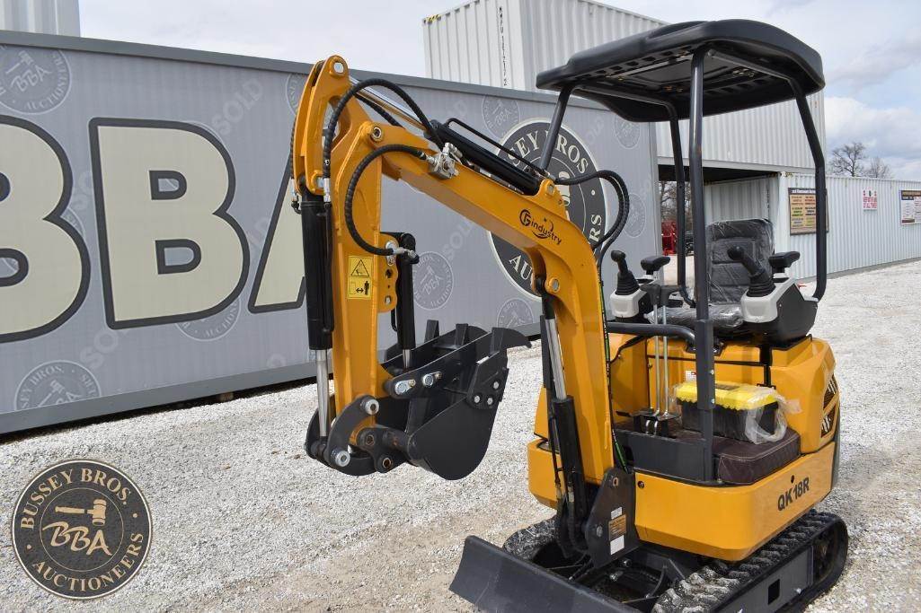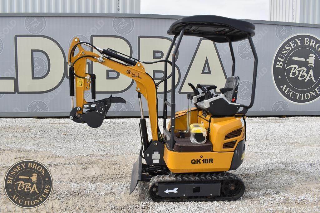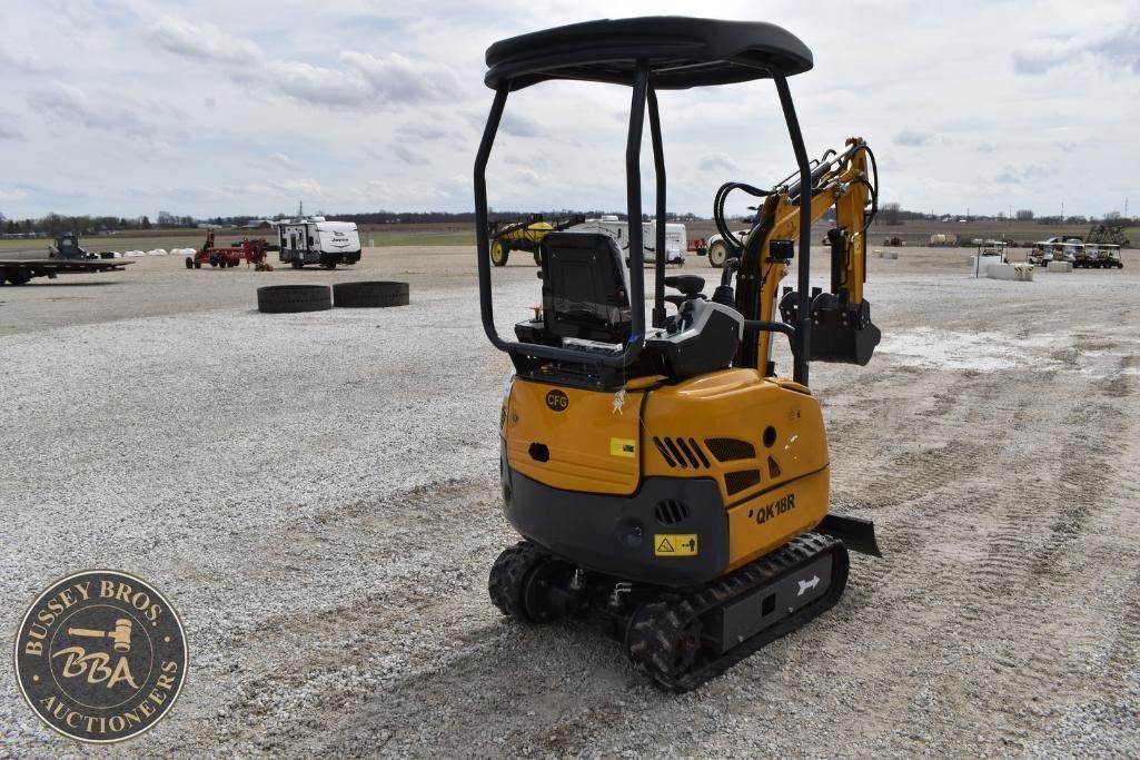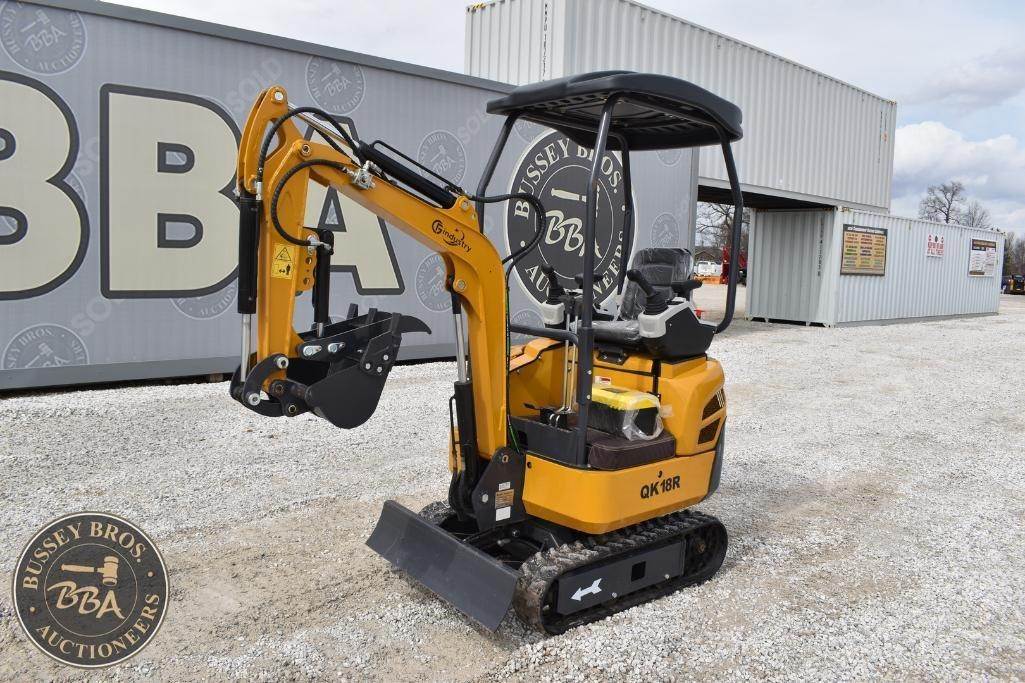 CFG Industrial Mini Excavator Hydraulic thumb, grading blade, digging bucket, rubber tracks, aux hydraulics, gas engine, toolbox, QK18R, SN#QK18R202511220928, NEW/UNUSED