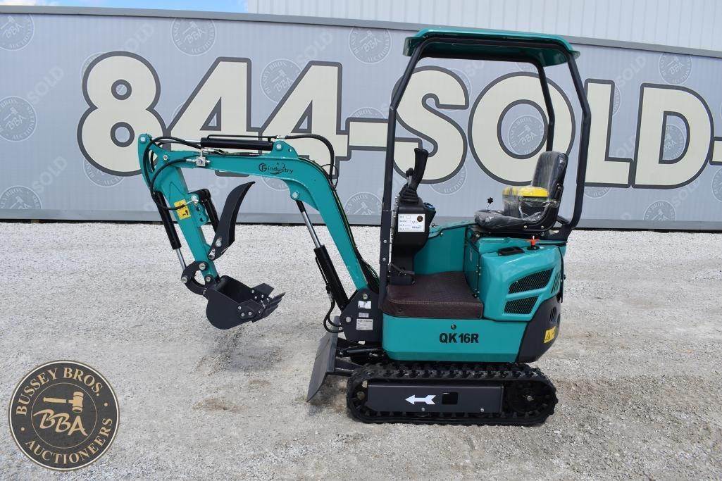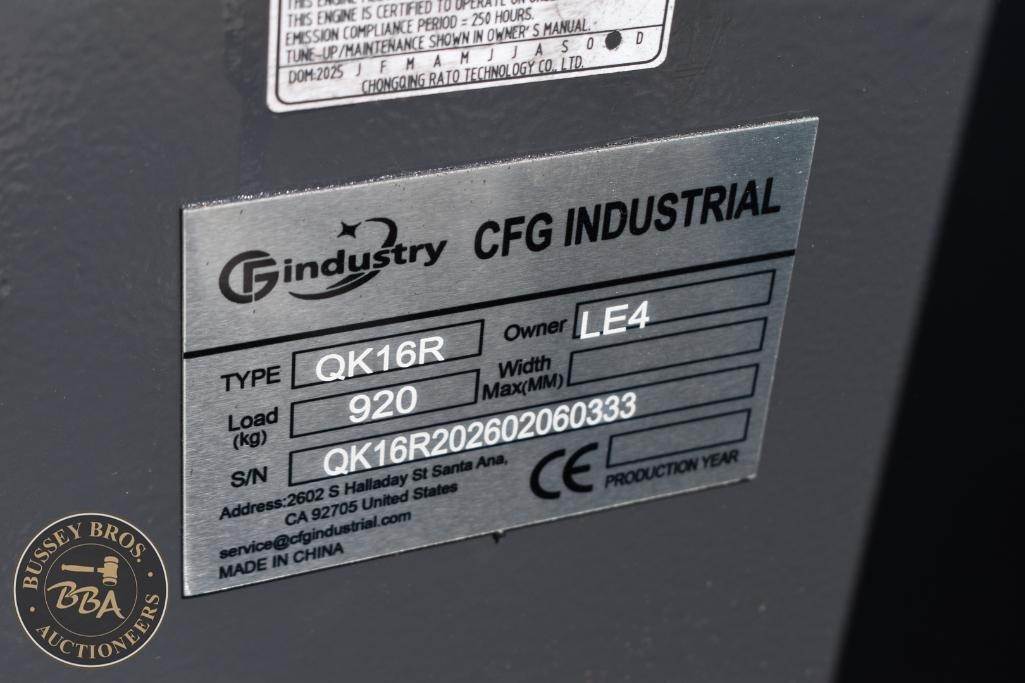 CFG Industrial Mini Excavator Hydraulic thumb, grading blade, digging bucket, rubber tracks, aux hydraulics, gas engine, toolbox, QK18R, SN#QK16R202602060333, NEW/UNUSED