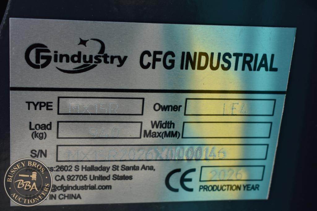 CFG Industrial Mini Excavator Manual thumb, grading blade, digging bucket, rubber tracks, gas engine, toolbox, MH15R, SN#MX15R2026X0000146, NEW/UNUSED
